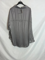 ZARA. Camisa gris manga larga satinada. T.XL
