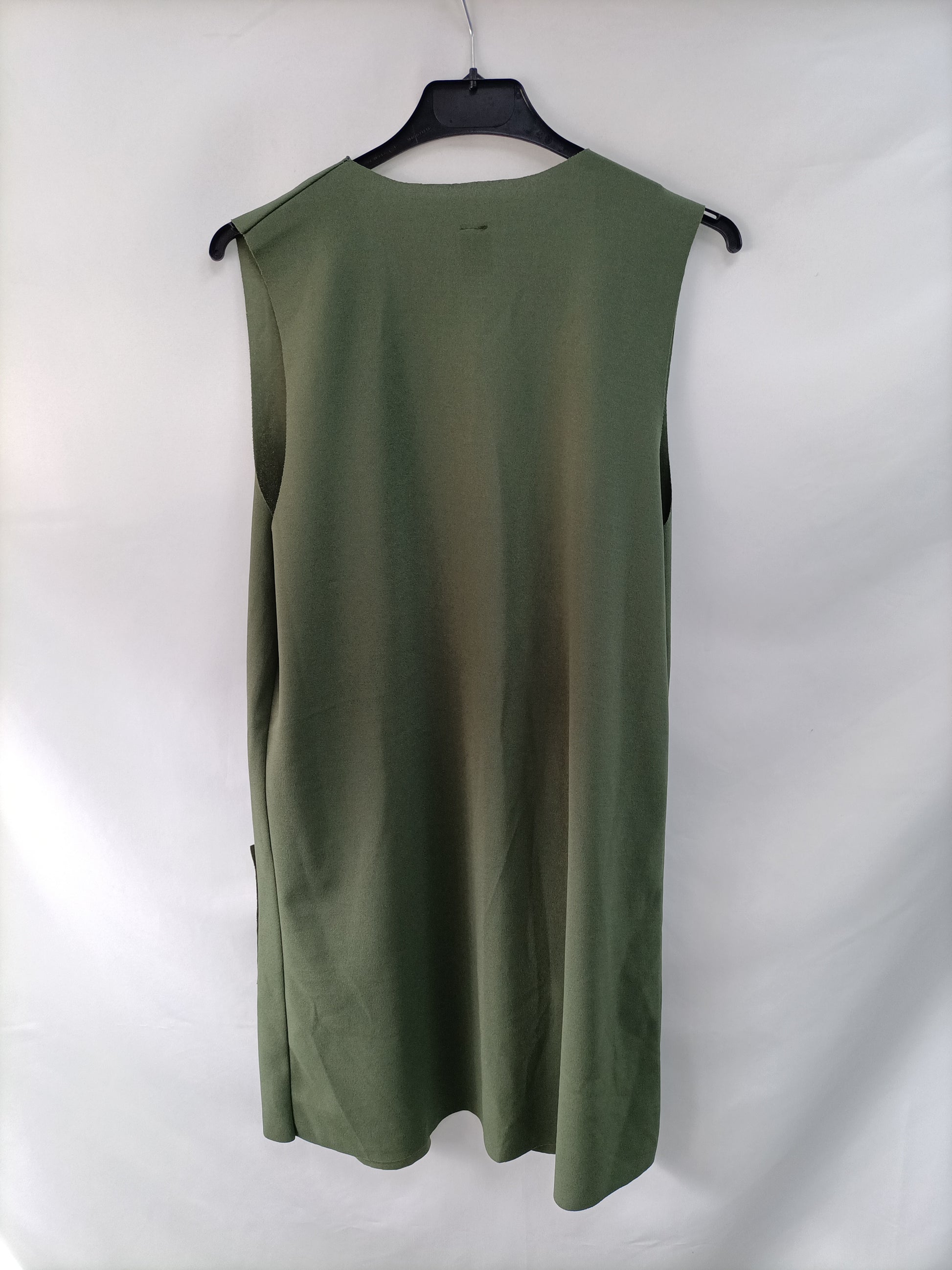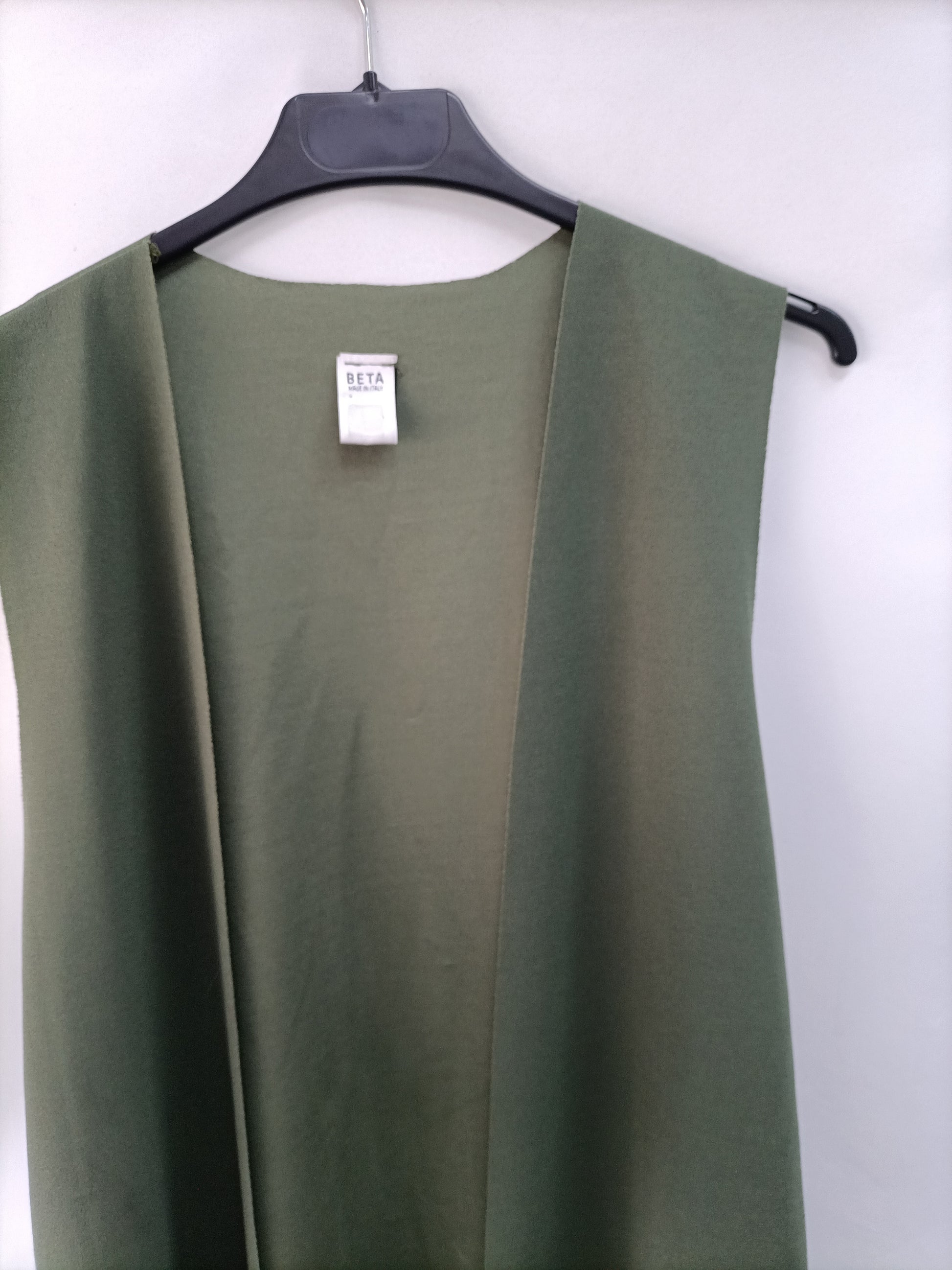 Chaleco verde fluido y elastico. No se abrocha. largo 87 cm
