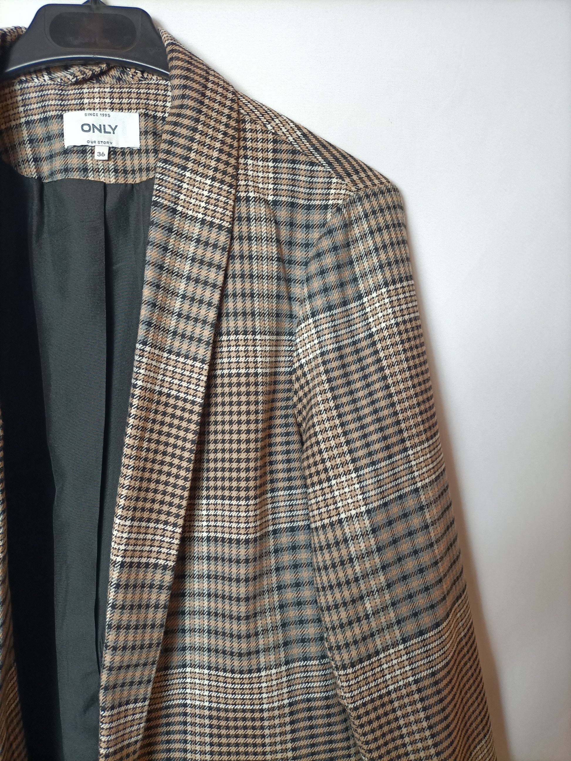 Blazer marrón de cuadros. No se abrocha. De sisa a sisa 46 largo 70 cm