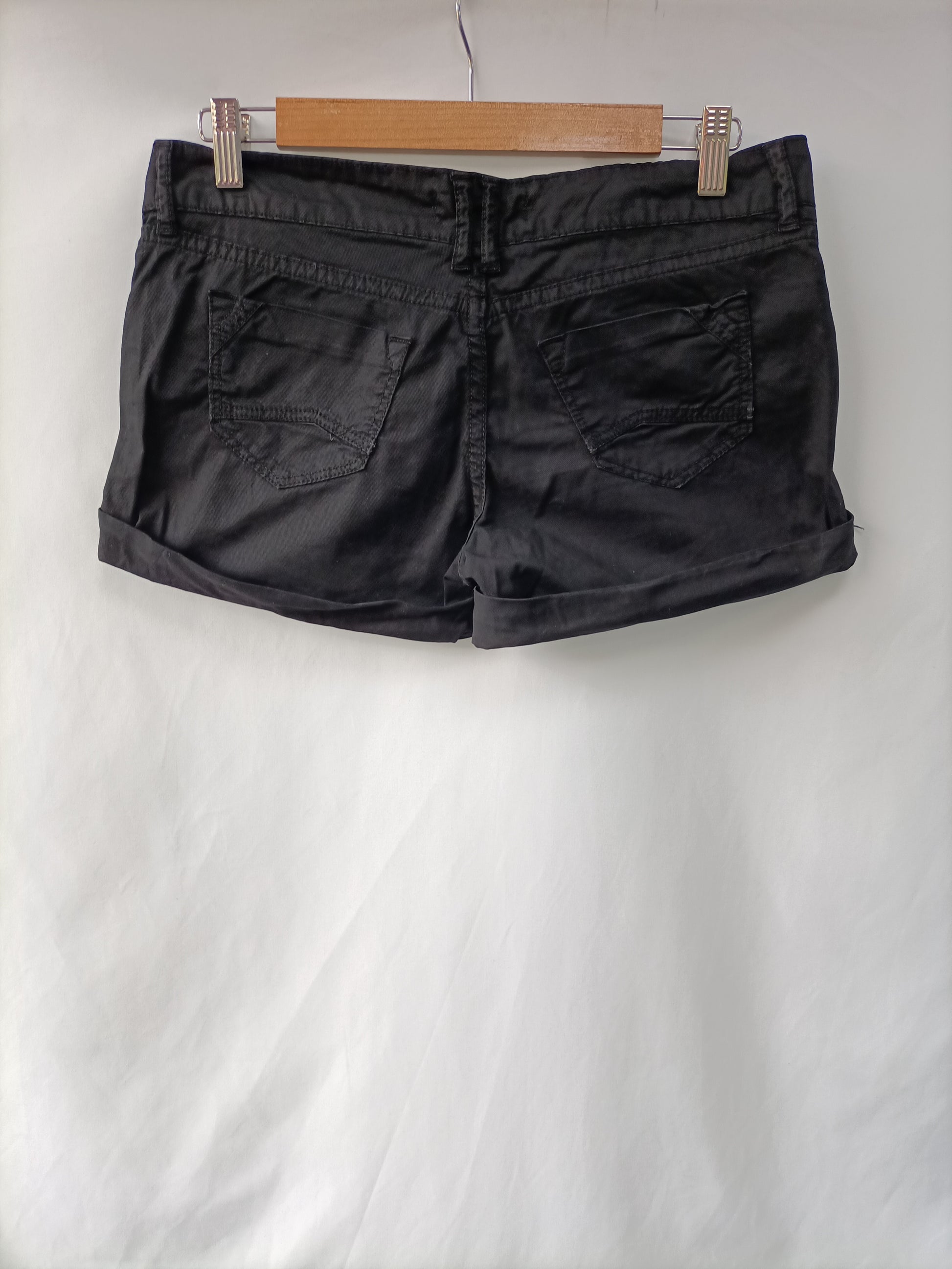 Shorts negro fino con dobladillo. Cintura 38 cm Largo 25 cm