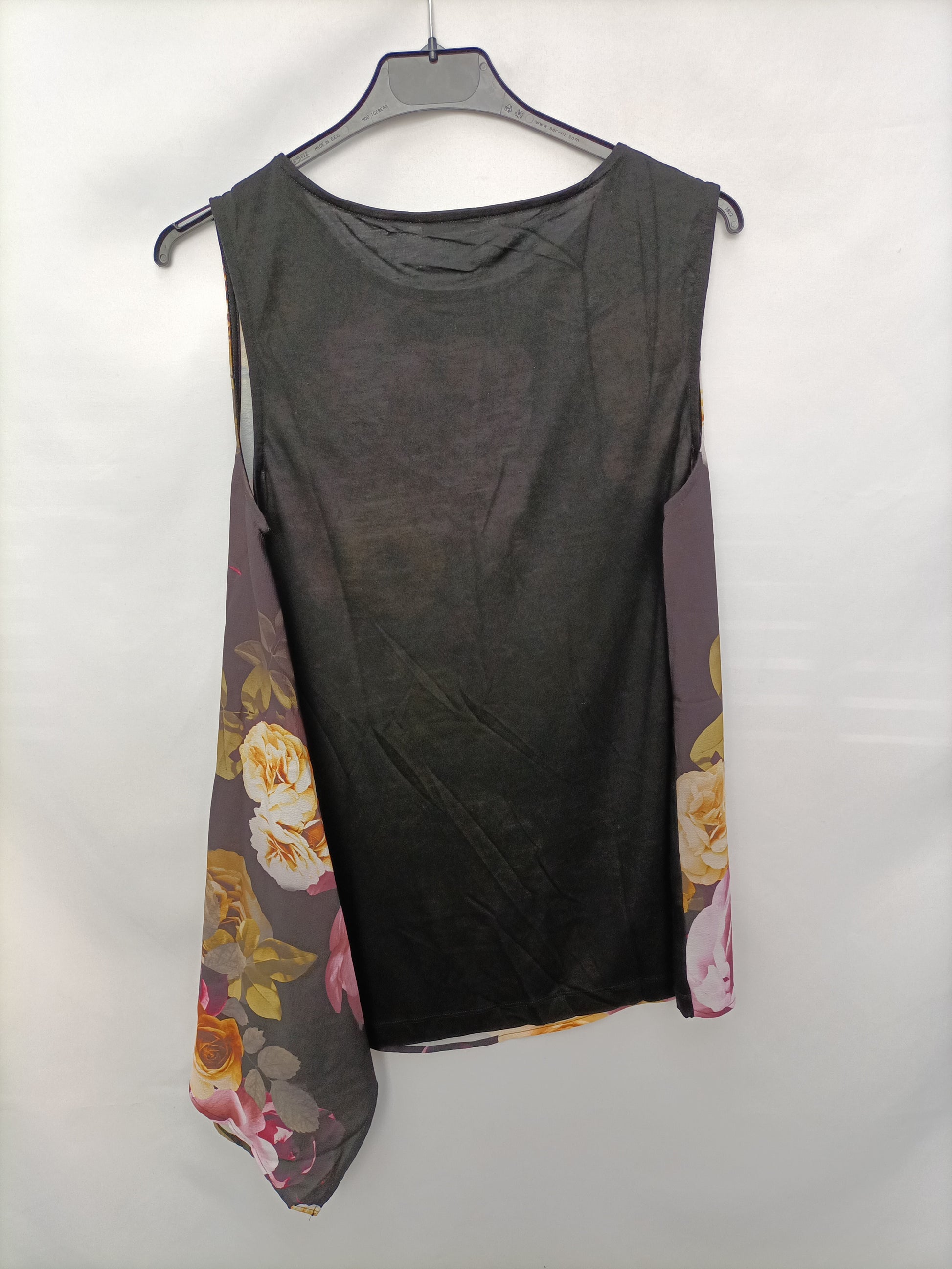 Top de flores con doble textura. Lateral más largo elástica. largo 63 cm.