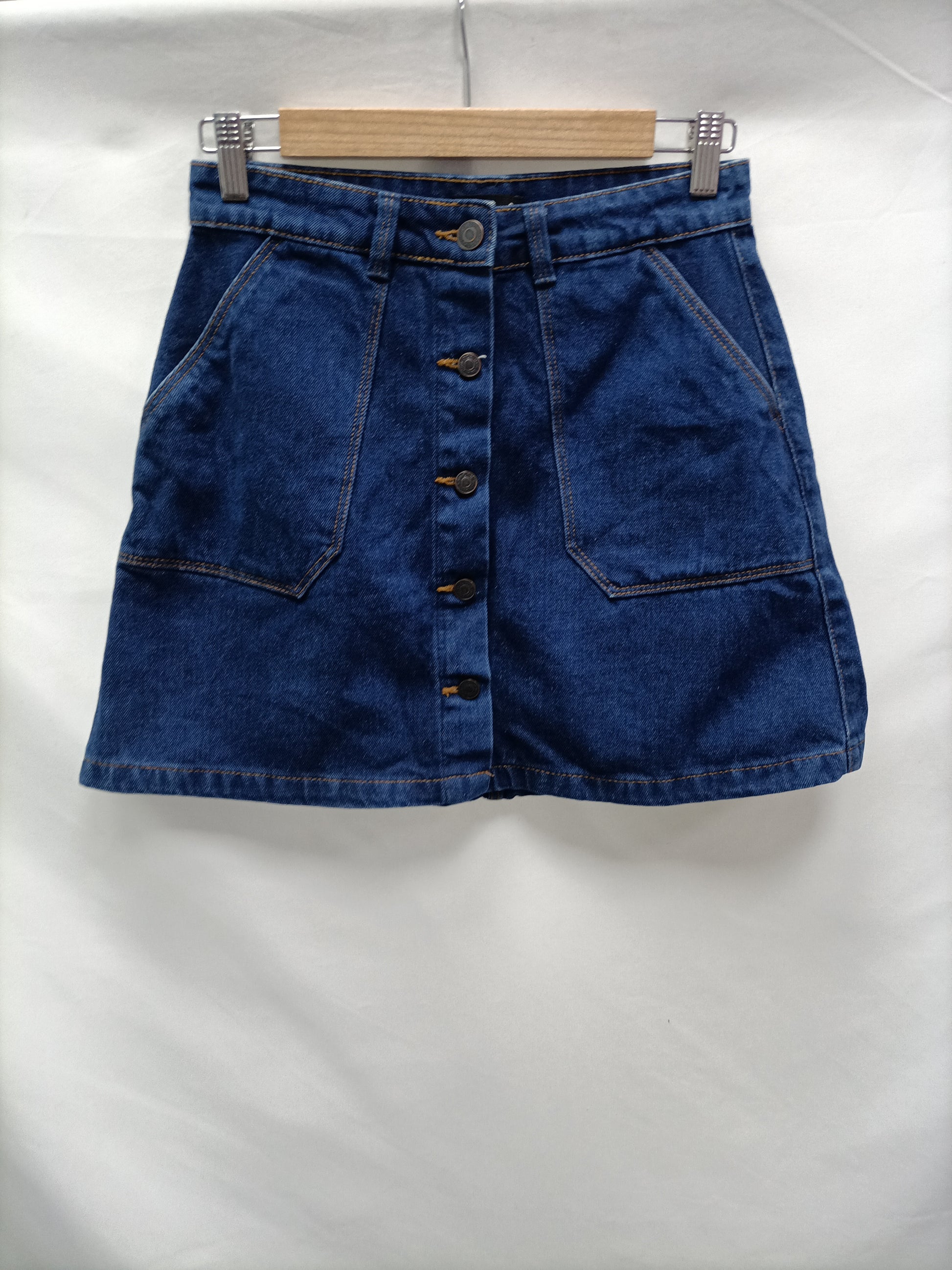 Falda vaquera cortita con botones. No elastica. Cintura 36 cm Largo 42 cm
