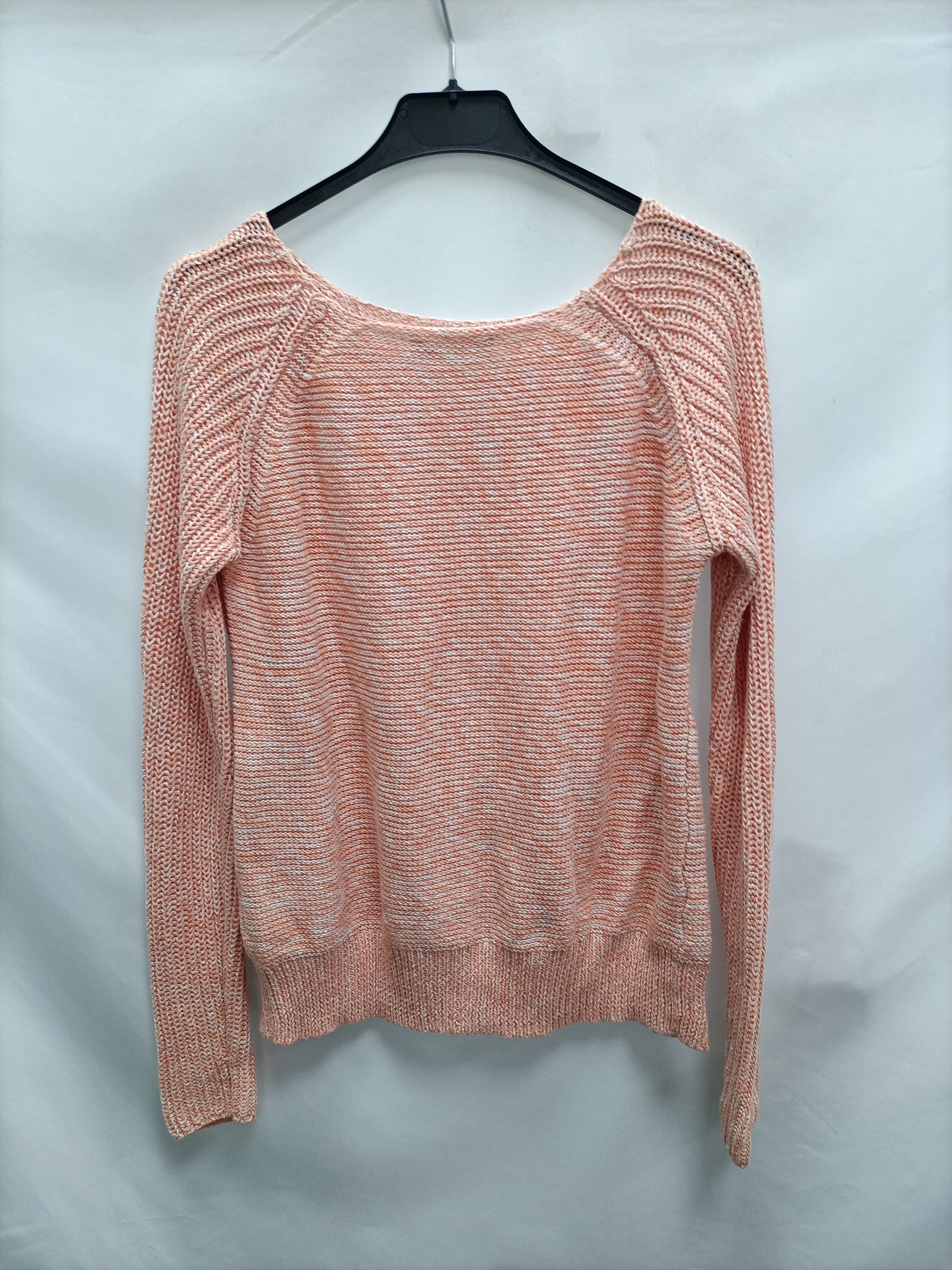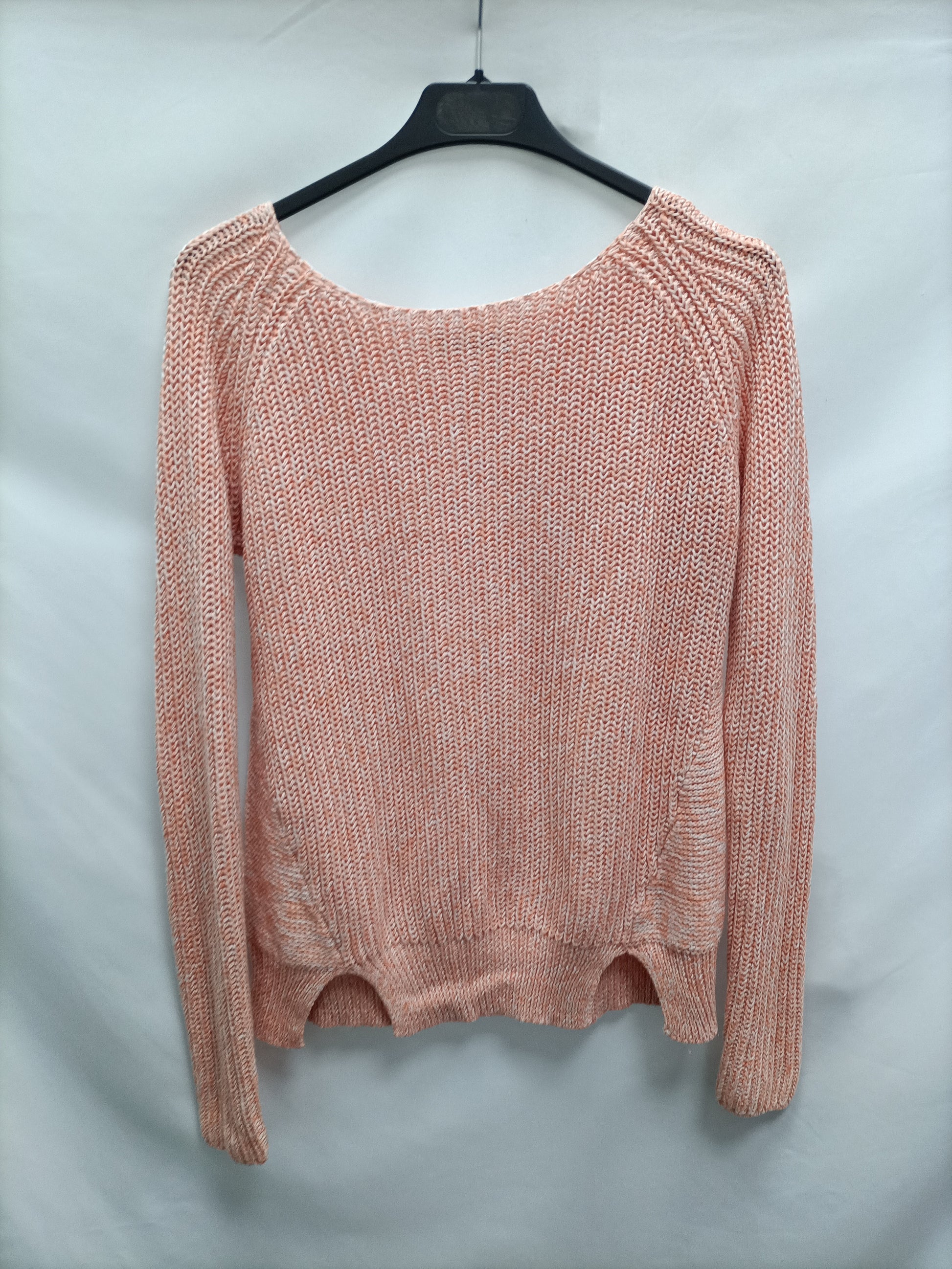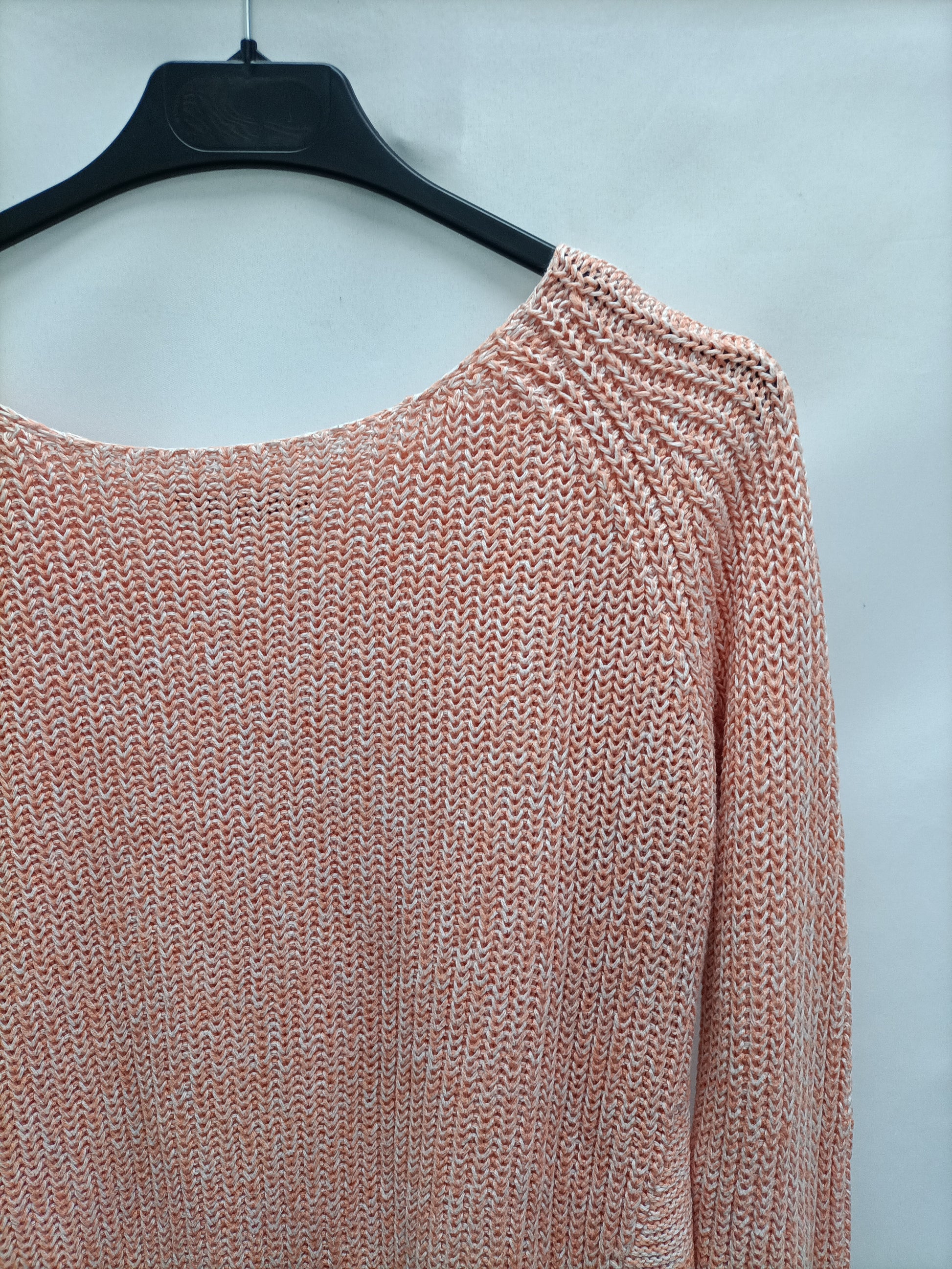 Jersey jaspeado naranja y blanco de punto primaveral. Elastico. largo 53 cm.