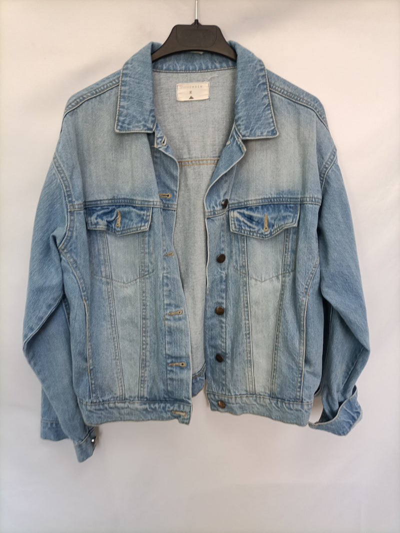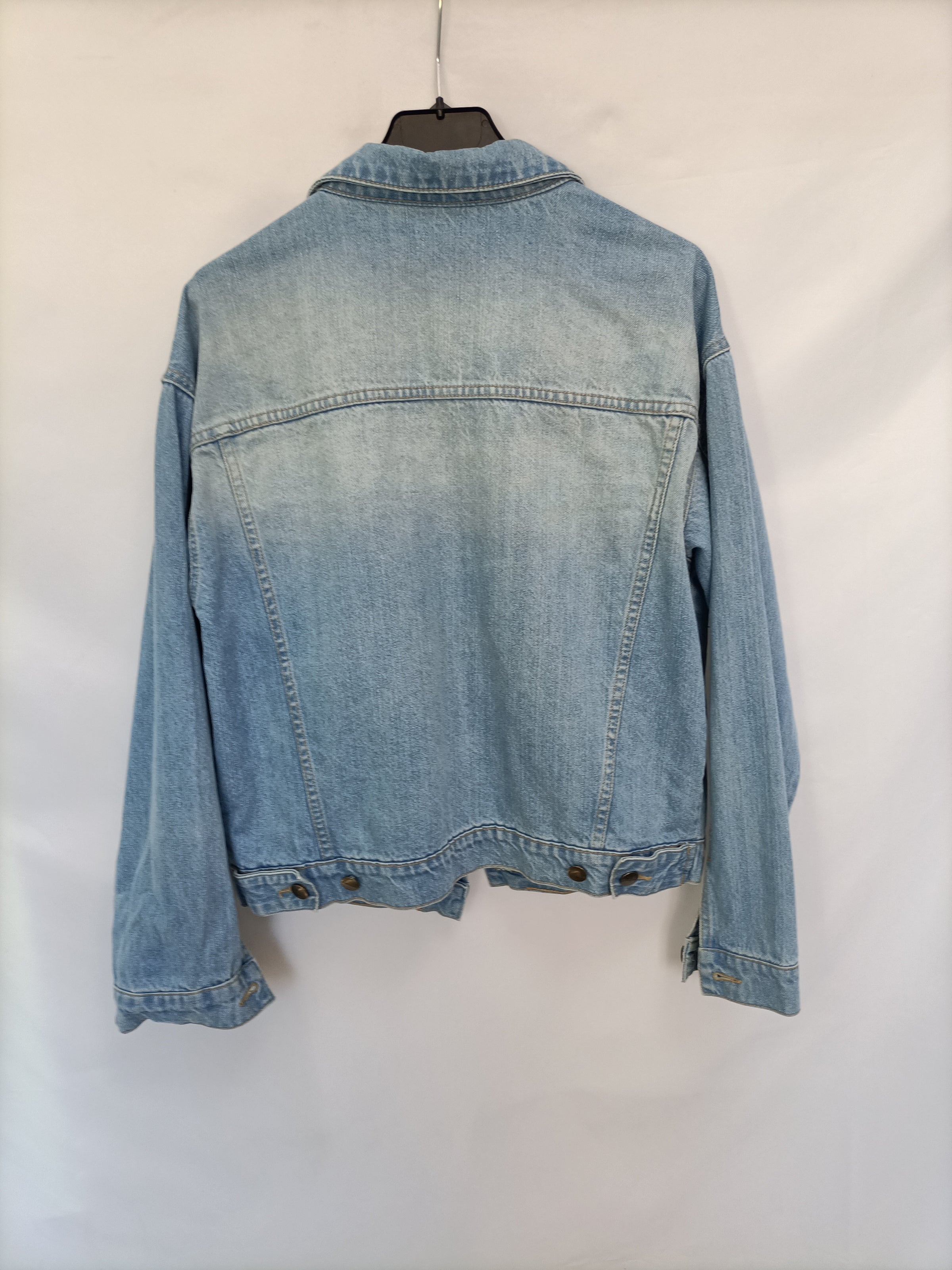 Cazadora vaquera clarita efecto desgastado. No elástica. De sisa a sisa 53 cm largo 60 cm