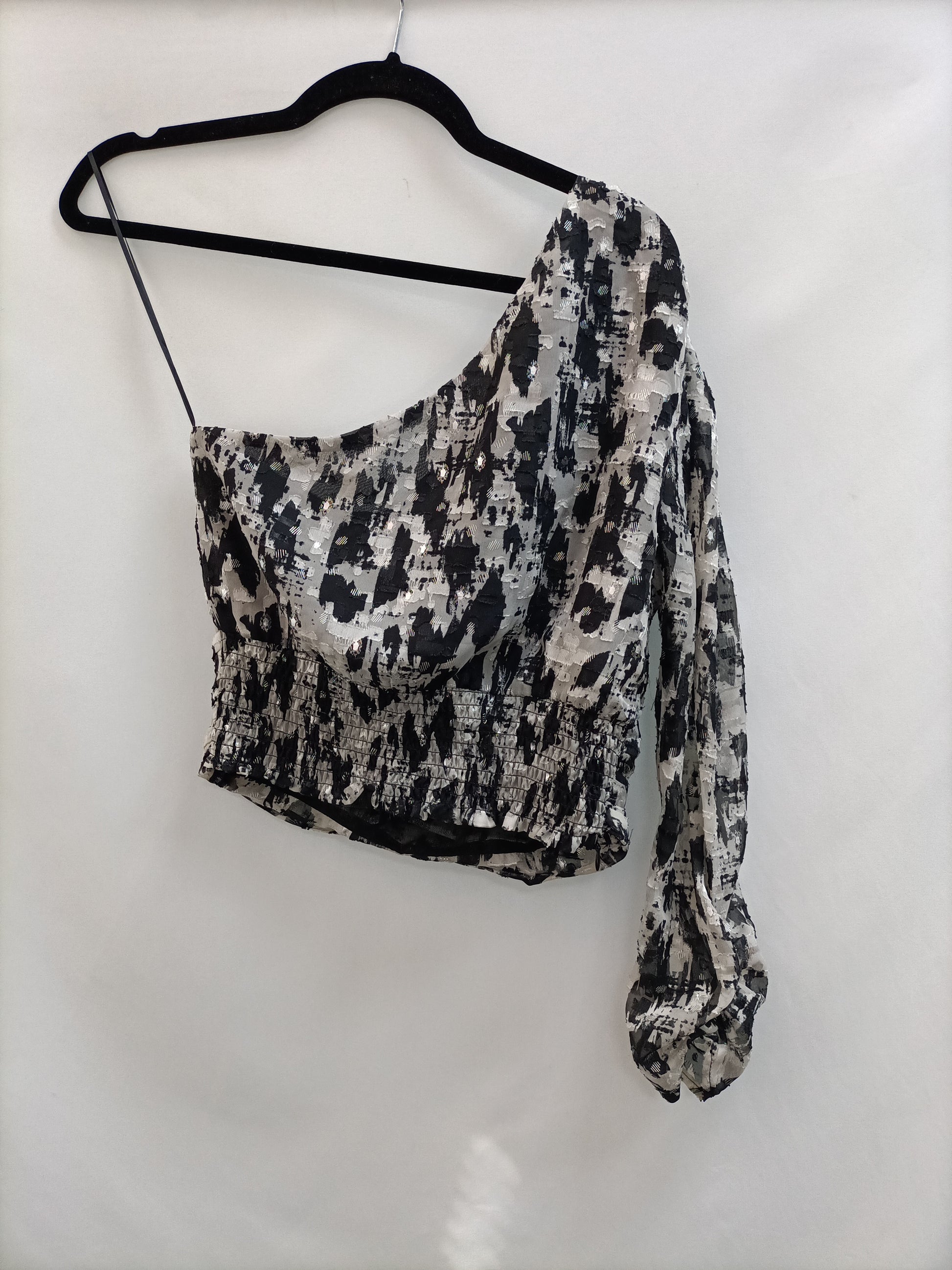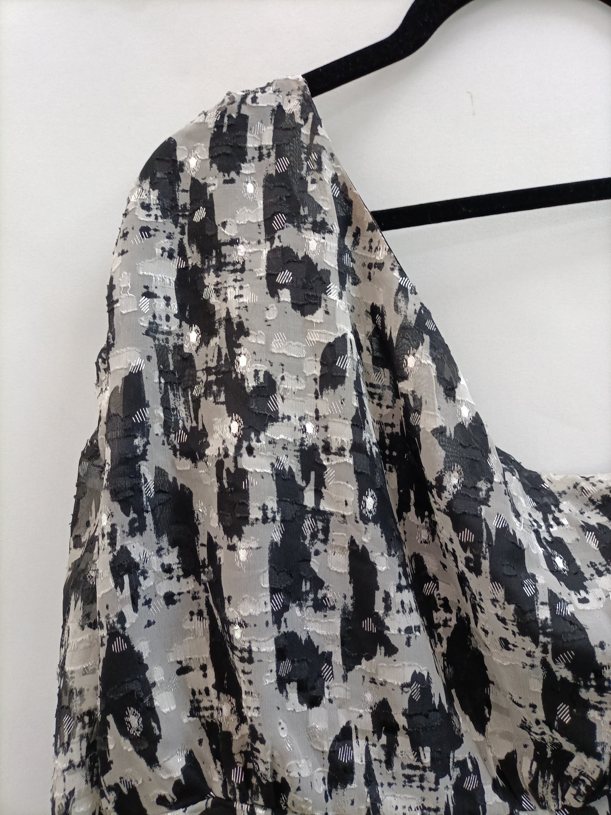 Top asimétrico brillos y tejido textura. De sisa a sisa 44 cm largo 45 cm