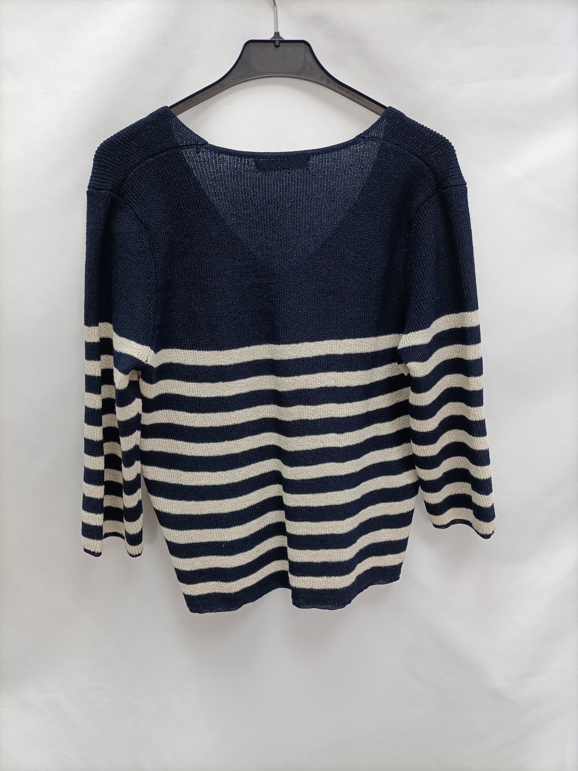 Jersey clásico rayas marinera en azul y beiges.elastico y fluido. Largo 53 cm