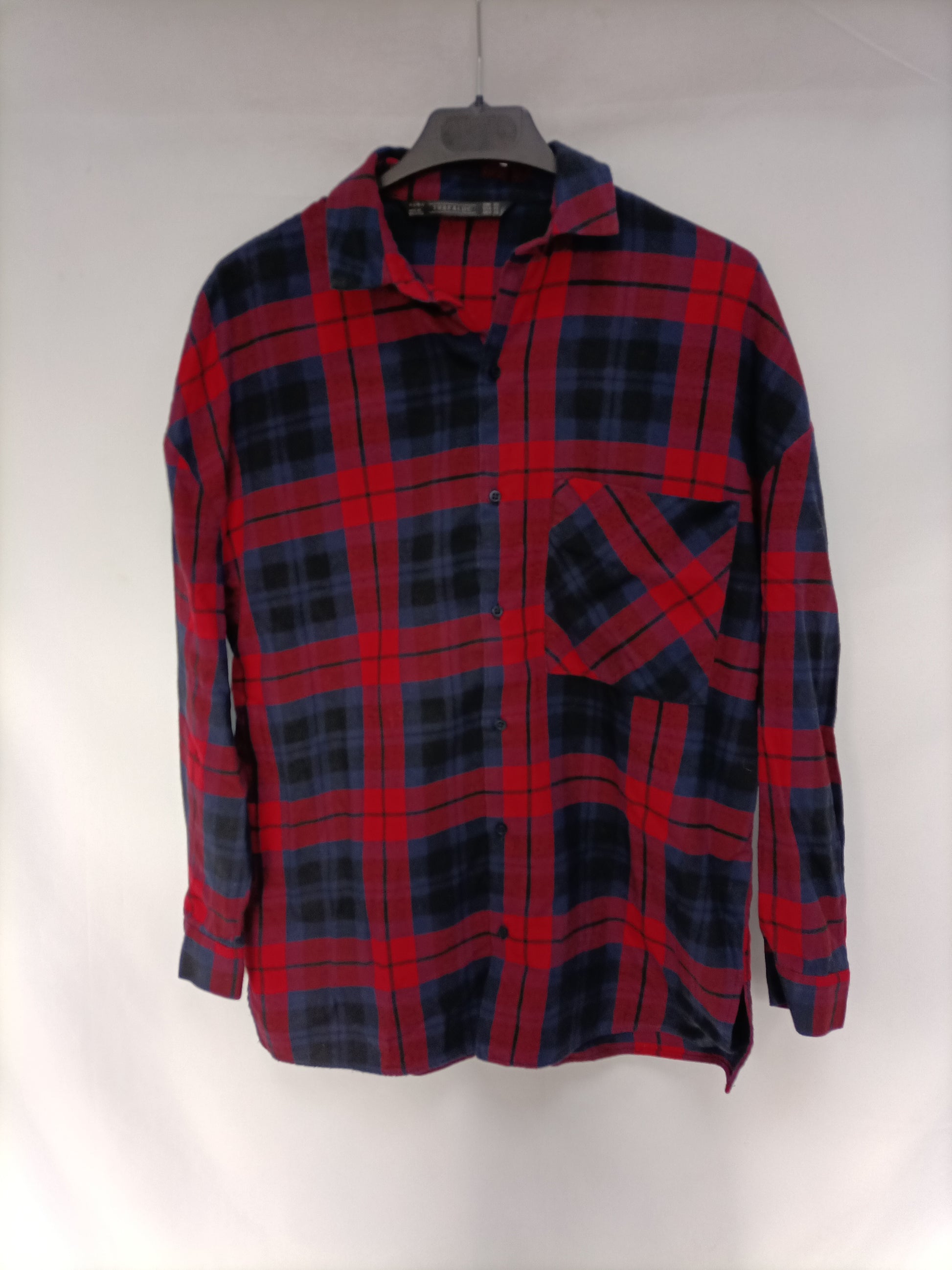 Camisa de cuadros azul y roja estilo leñador. Tejido de franela no elástica. de sisa a sisa 51 cm Largo 85 cm