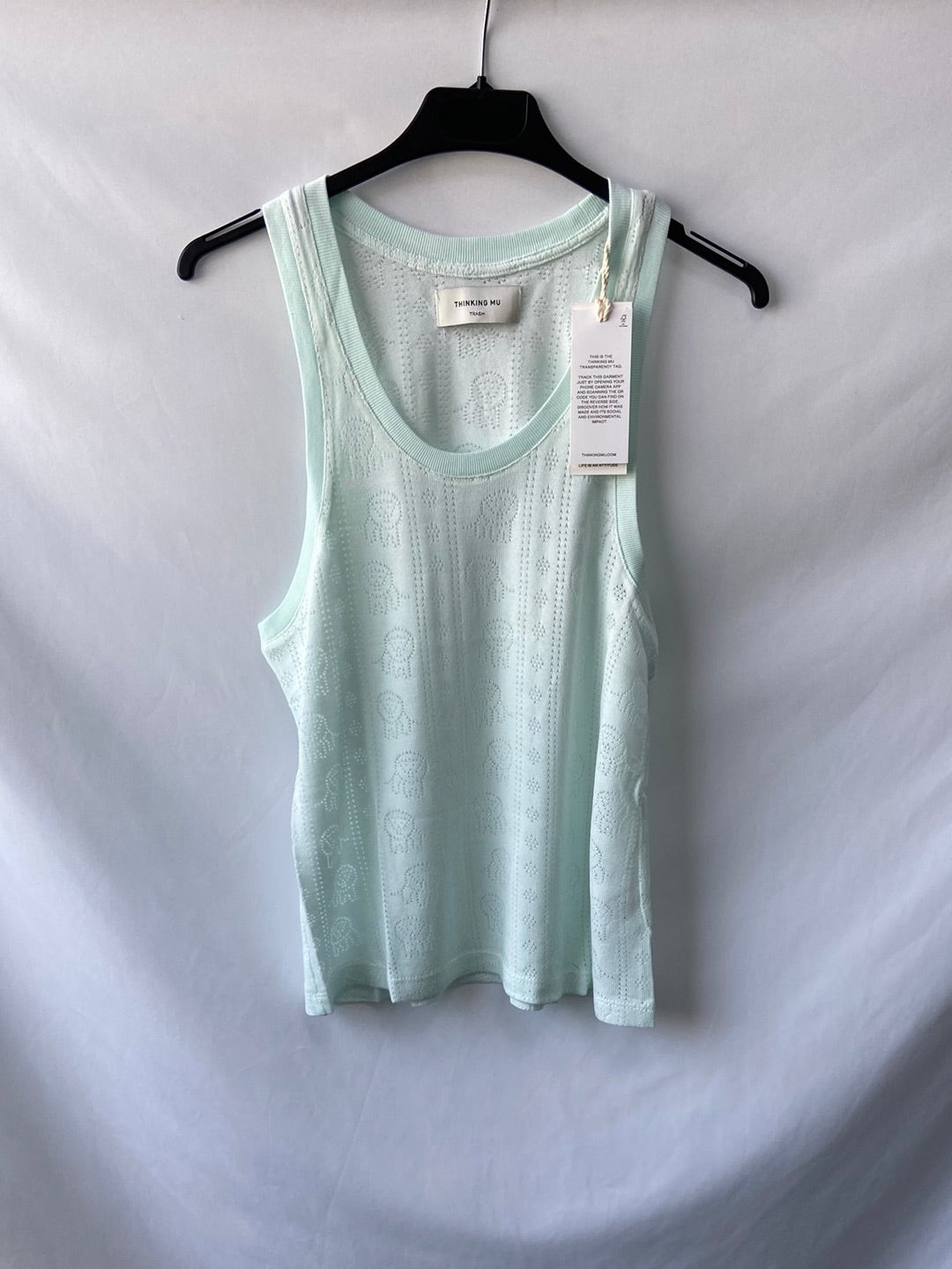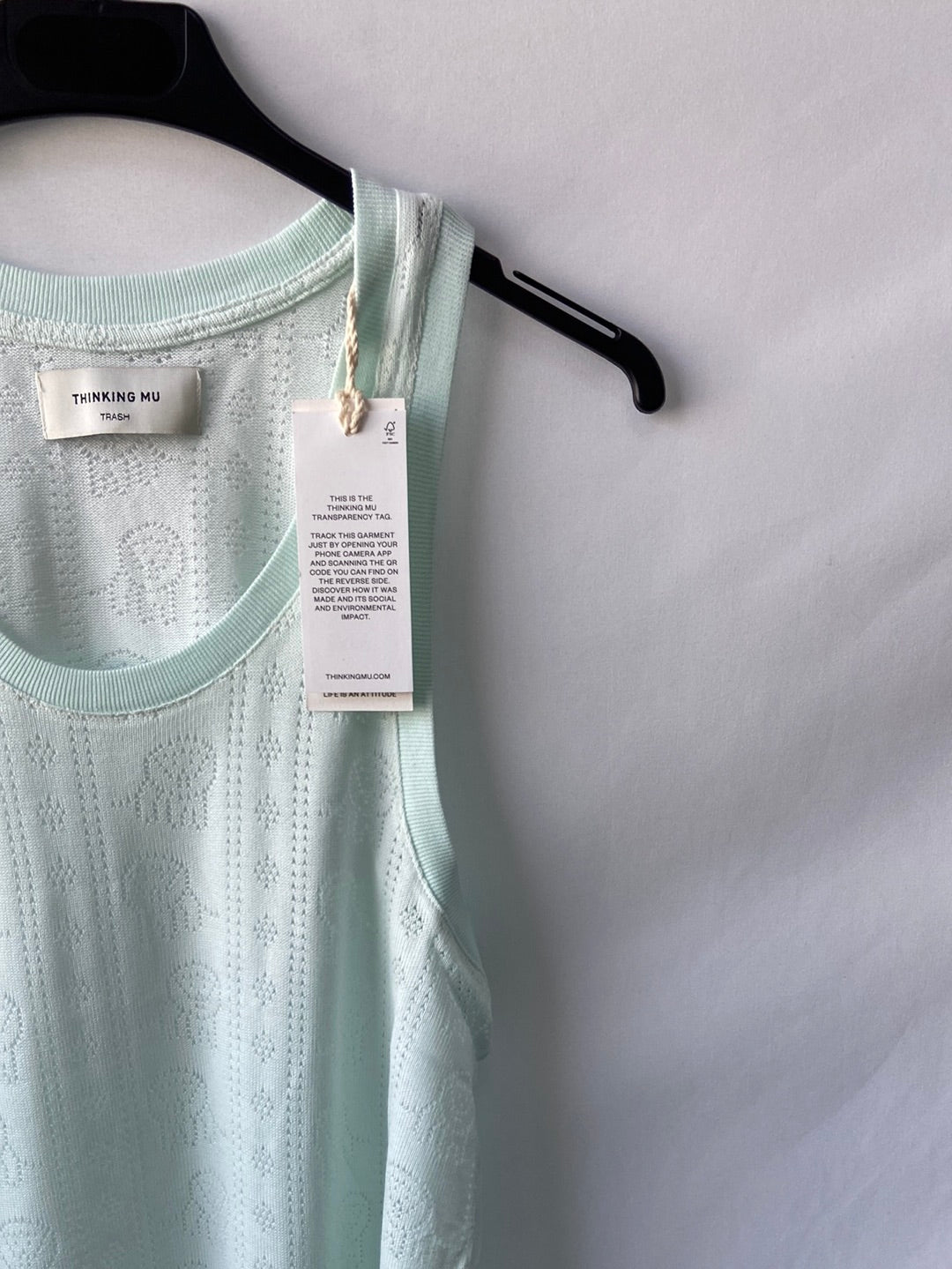 NUEVO CON ETIQUETA. camiseta troquelada verde pastel. largo cm