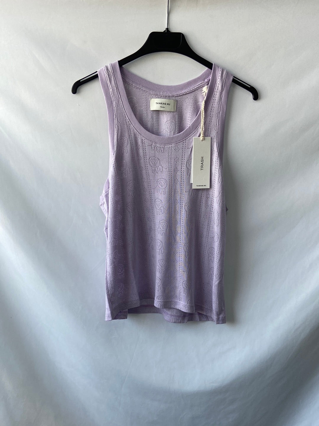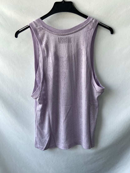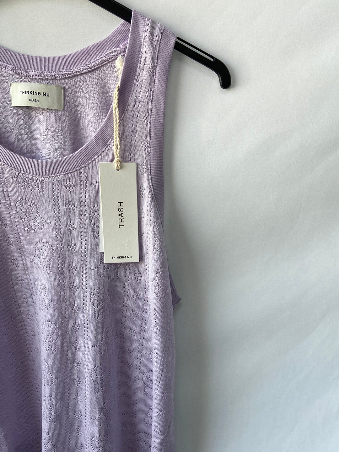 NUEVO CON ETIQUETA. camiseta troquelada lila. largo 58 cm
