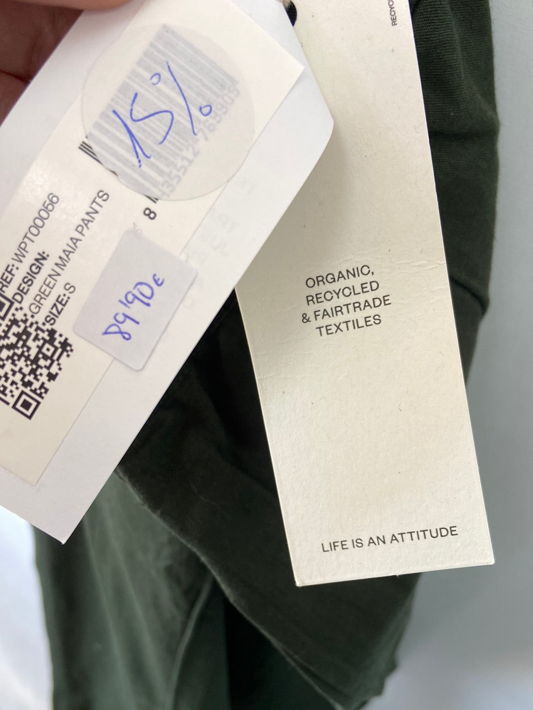 NUEVO CON ETIQUETA. Pantalón verde ancho estilo palazzo. cintura elástica. largo cm