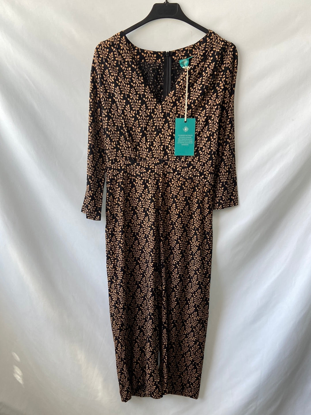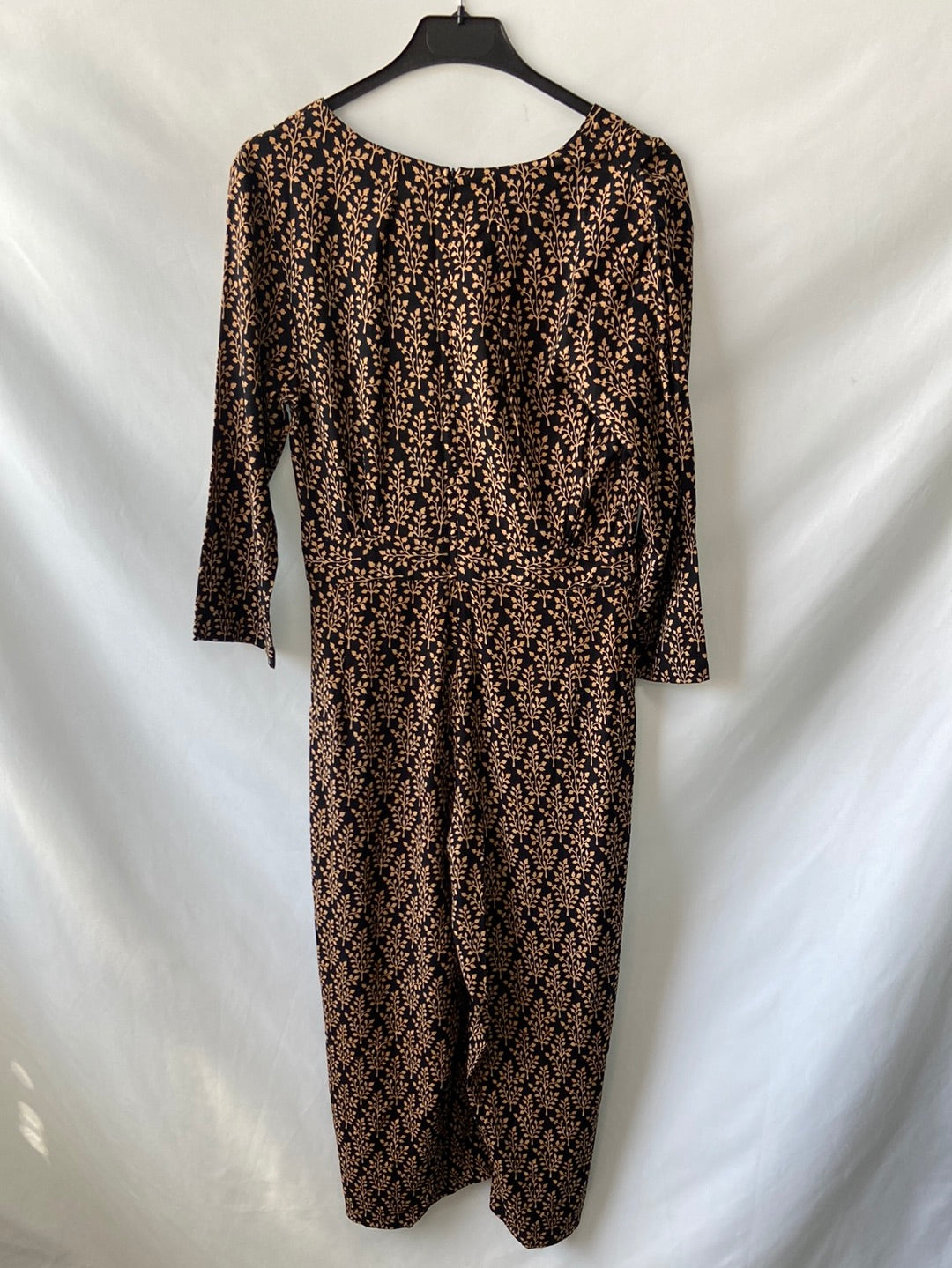 NUEVO CON ETIQUETA. Mono negro estilo cullote con flores en beige. No elástico. De sisa a sisa 42 cm largo 123 cm