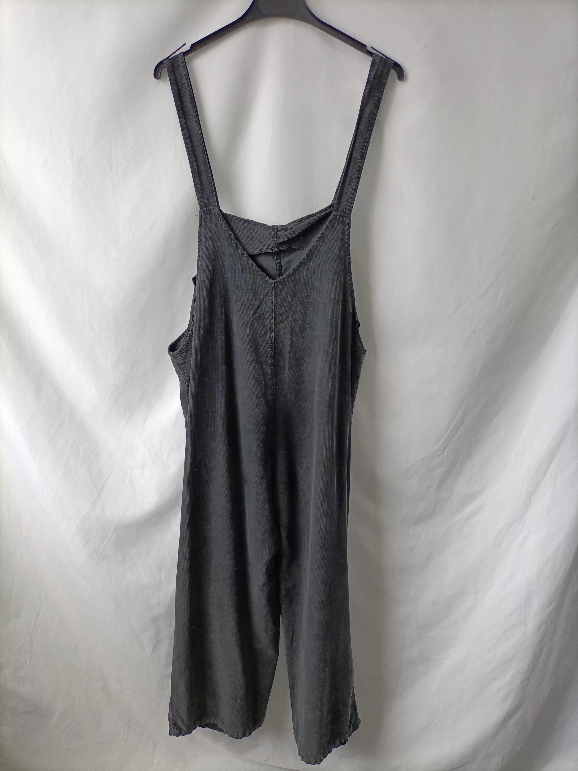 Peto ancho gris de pana fina. Tirantes ajustables. No elástico. De sisa a sisa 49 cm largo 136 cm