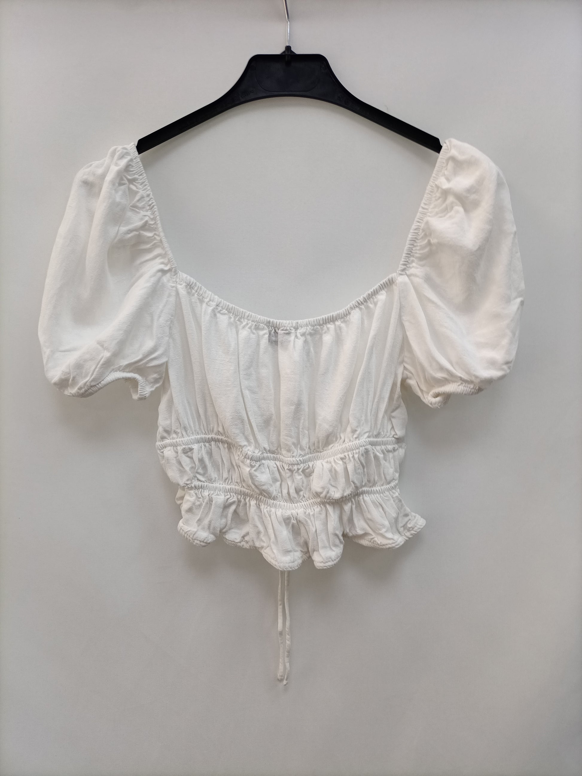 croptop blanco con detalle fruncidos. Elástico. largo 37 cm