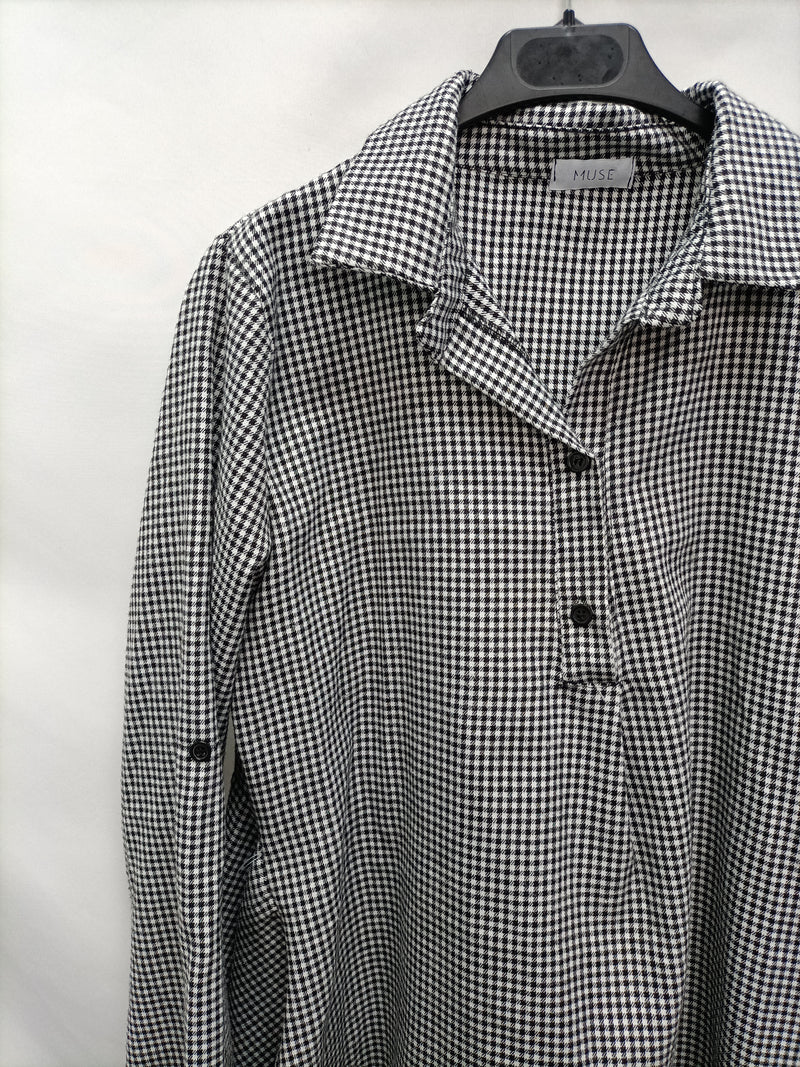 Vestido largo asimétrico de cuadros estilo camisero. No elastico. De sisa a sisa largo (trasero) 88 cm
