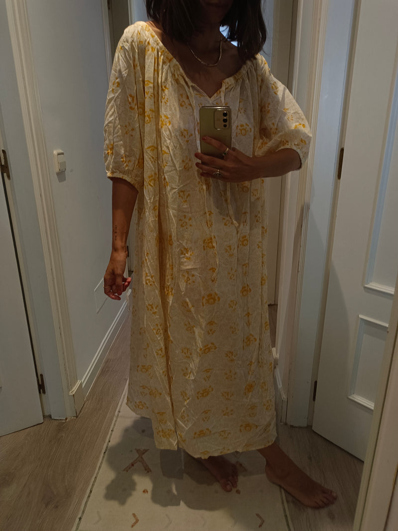 Vestido largo de flores amarillas fluido. 100%algodón