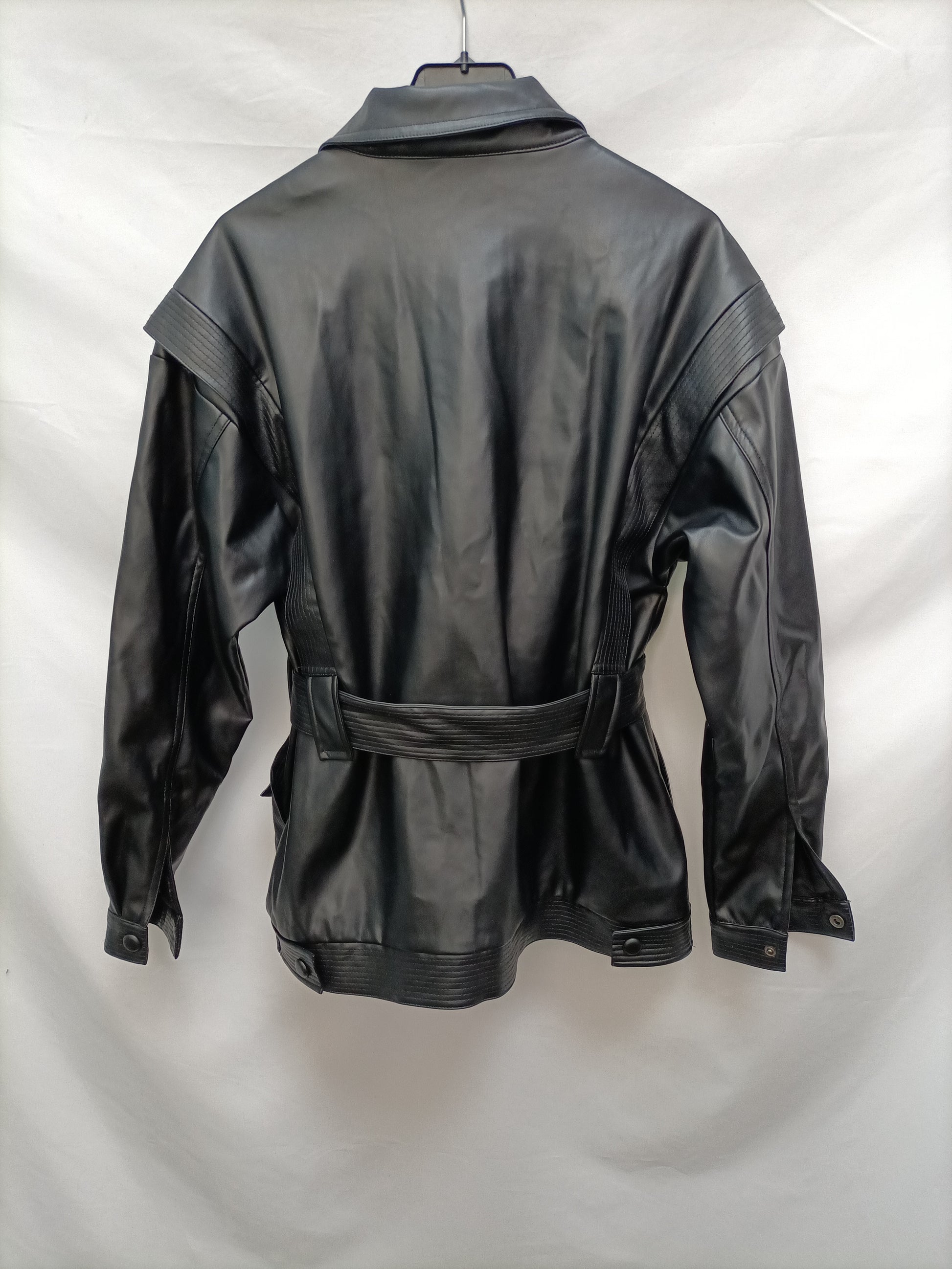 Cazadora negra efecto piel Abotonado con detalle de cinturón estilo lazada. Oversized. De sisa a sisa 52 cm largo 63 cm