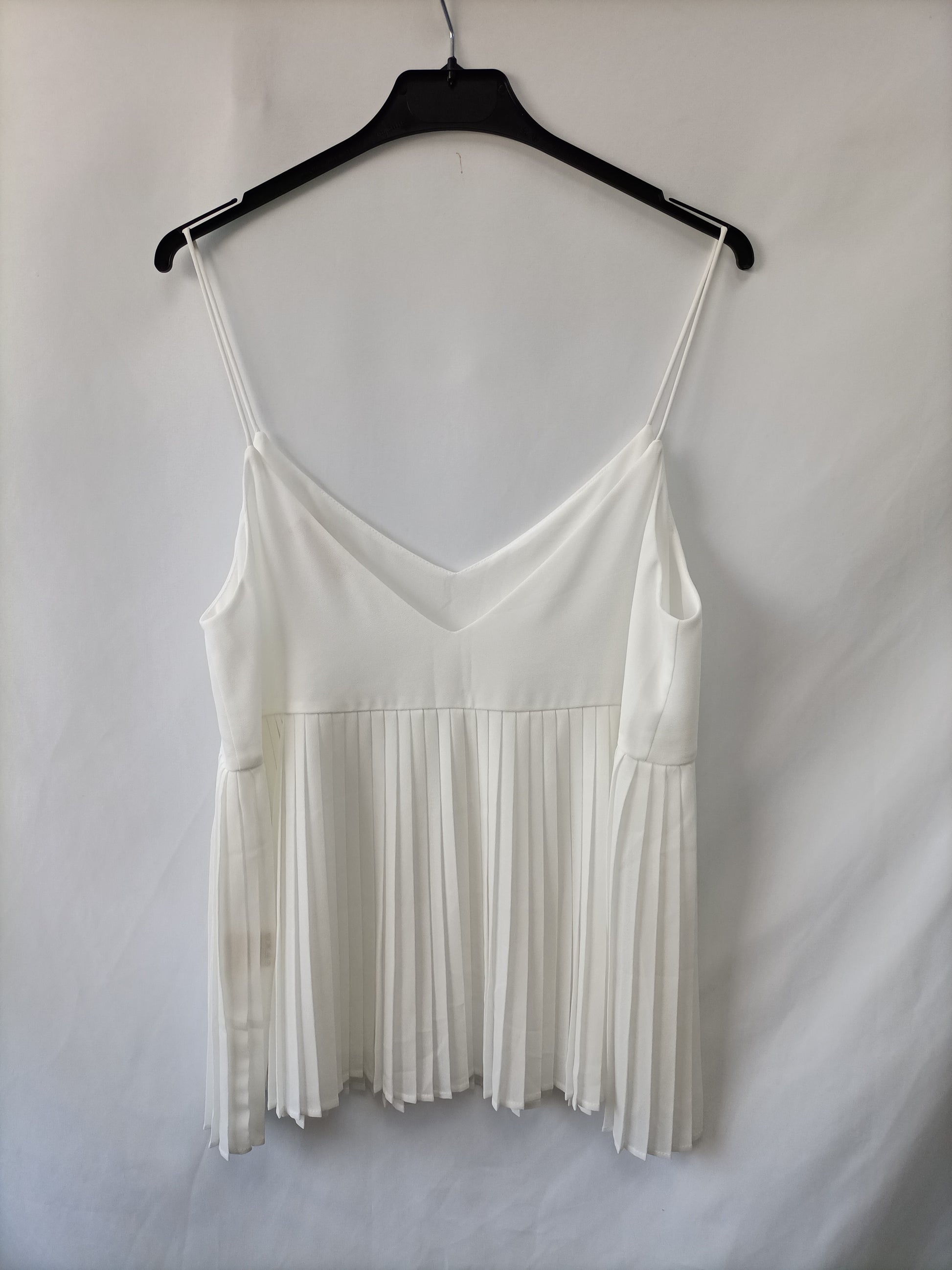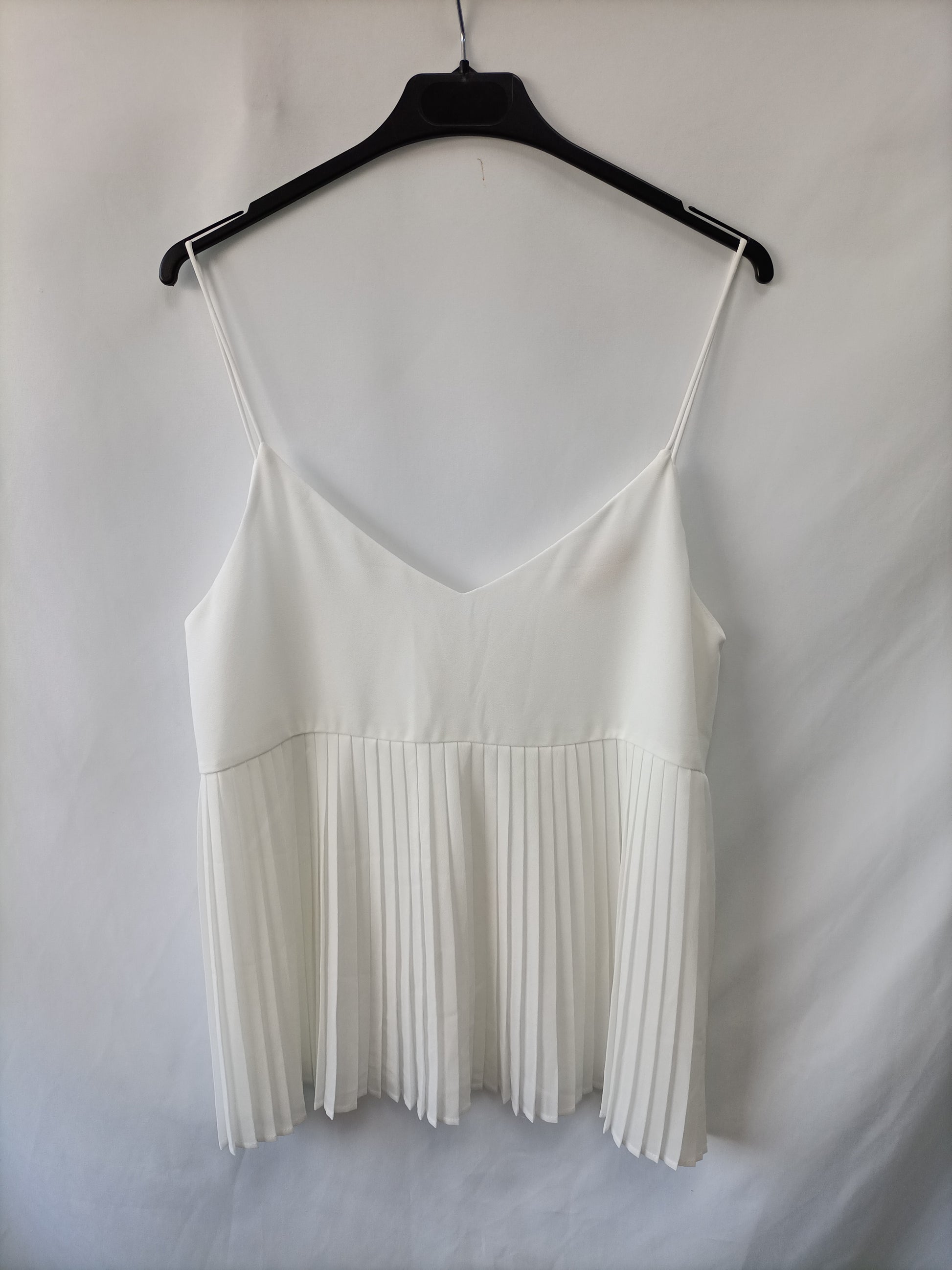 Top blanco con la parte de abajo plisada.De sisa a sisa 47 cm Largo 66 cm.