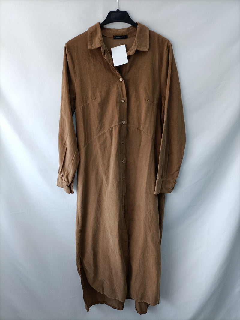 NUEVO CON ETIQUETA. Vestido largo estilo Camisero Abotonado de pana. No elastico. De sisa a sisa 53 cm largo 132 cm