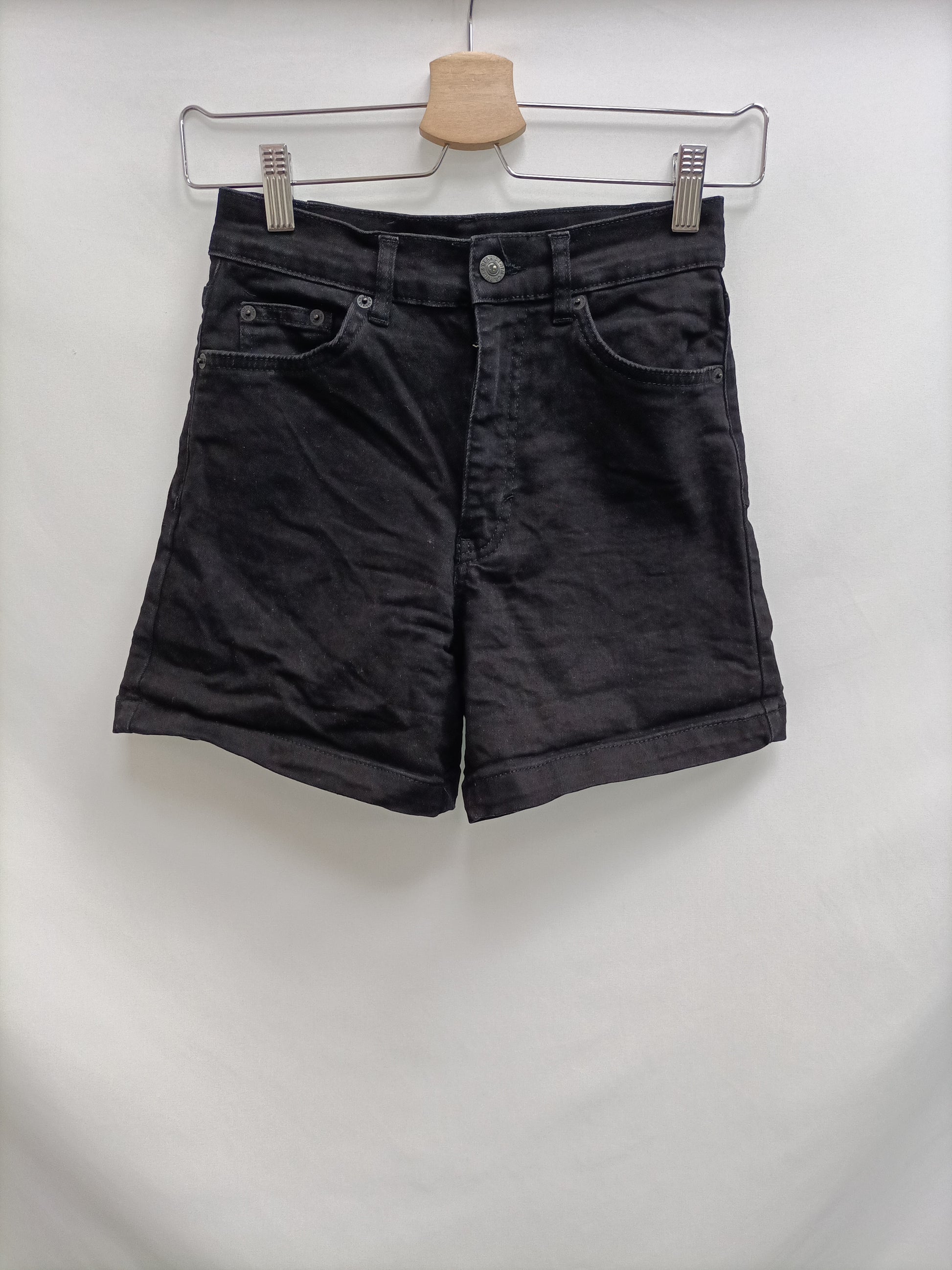 Shorts negro entallado de tiro alto. Elastico. Cintura 33 cm largo 38 cm