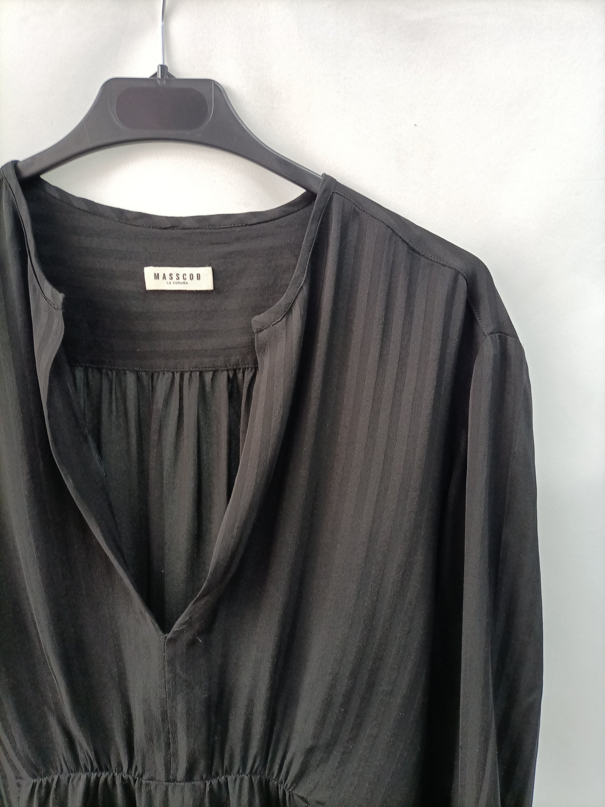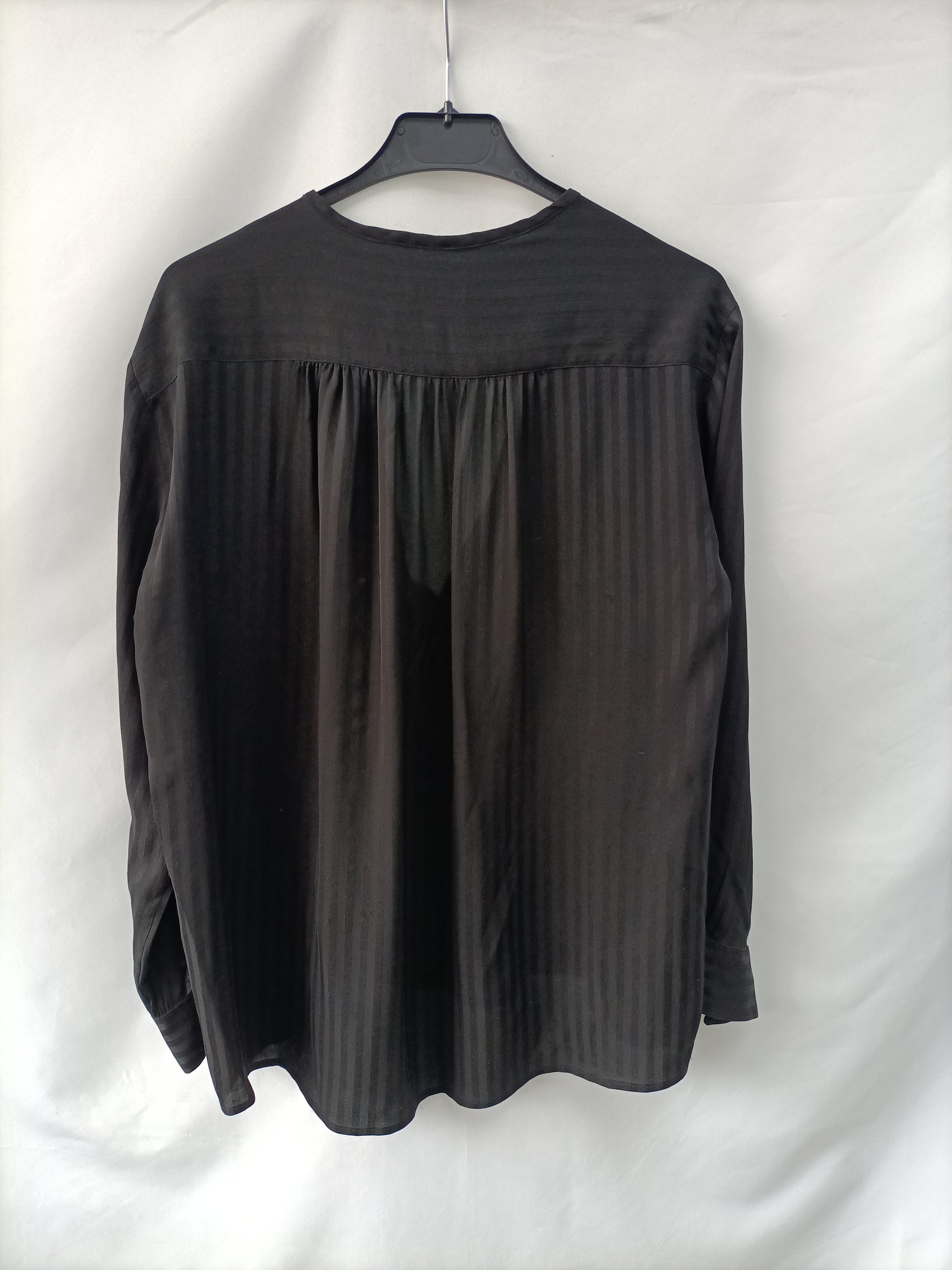 Blusa negra de rayas fluida. Seda. De sisa sisa 53 cm largo 60 cm