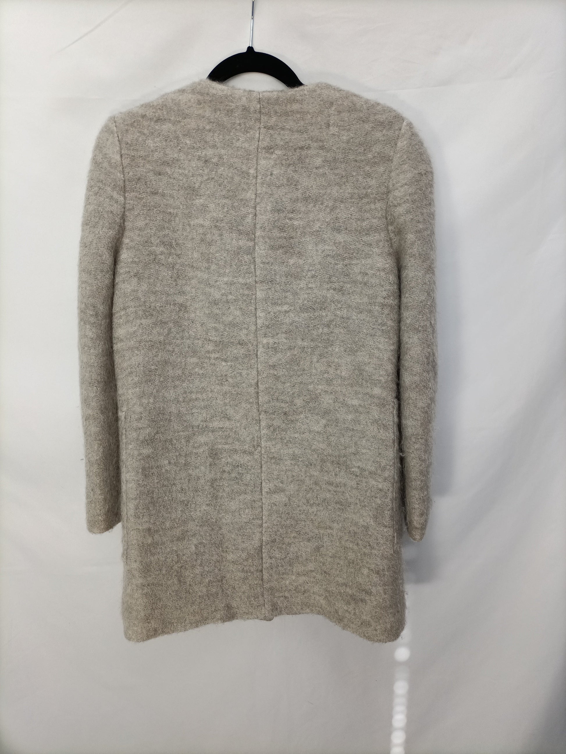 Abrigo beige de paño abotonado tejido estilo borreguito fino. No elástico. De sisa a sisa 48 cm Largo 41 cm
