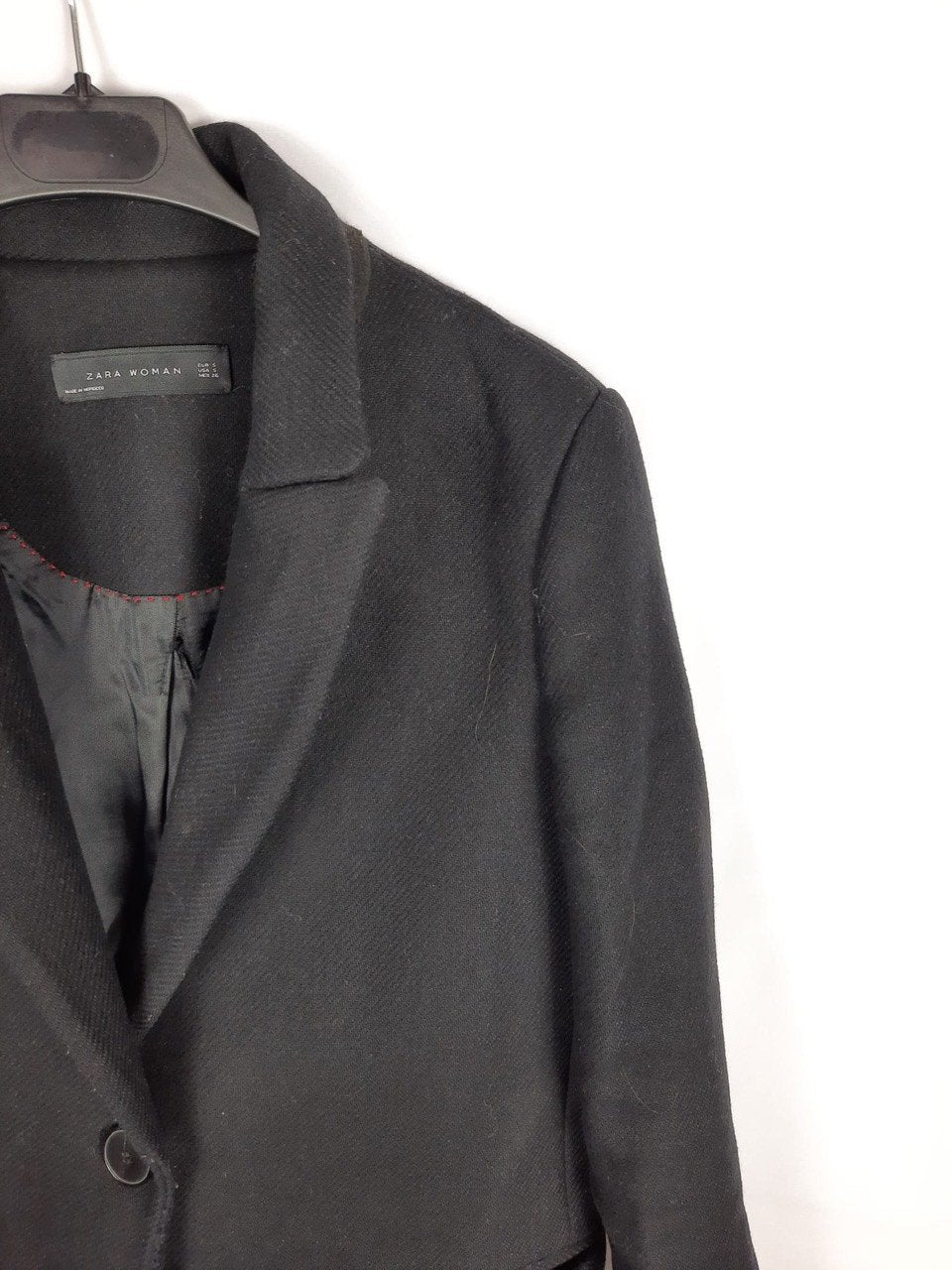 Zara. Abrigo negro de paño con botón. No elástico. De sisa a sisa 45 cm largo 97 cm