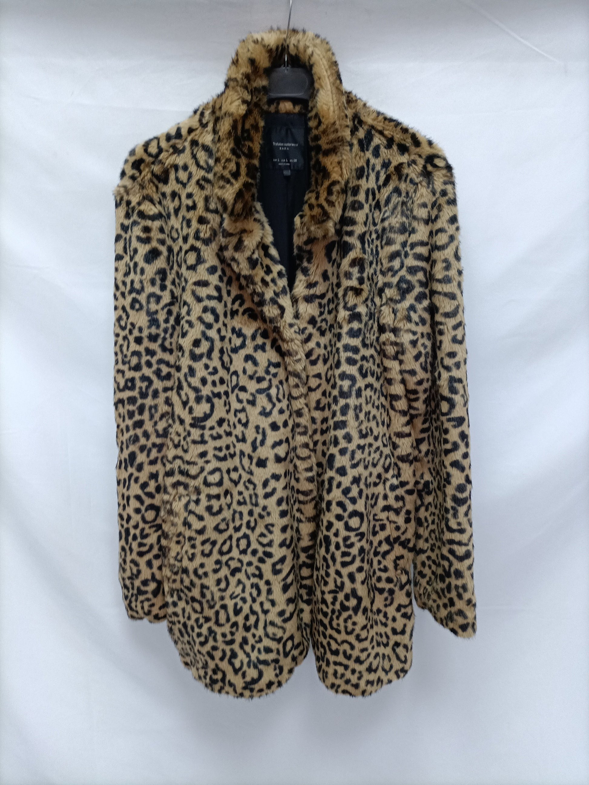 Abrigo de pelito sintético animal print. No elástico. Se abrocha con botones de clip. De sisa a sisa 53 cm largo 83 cm