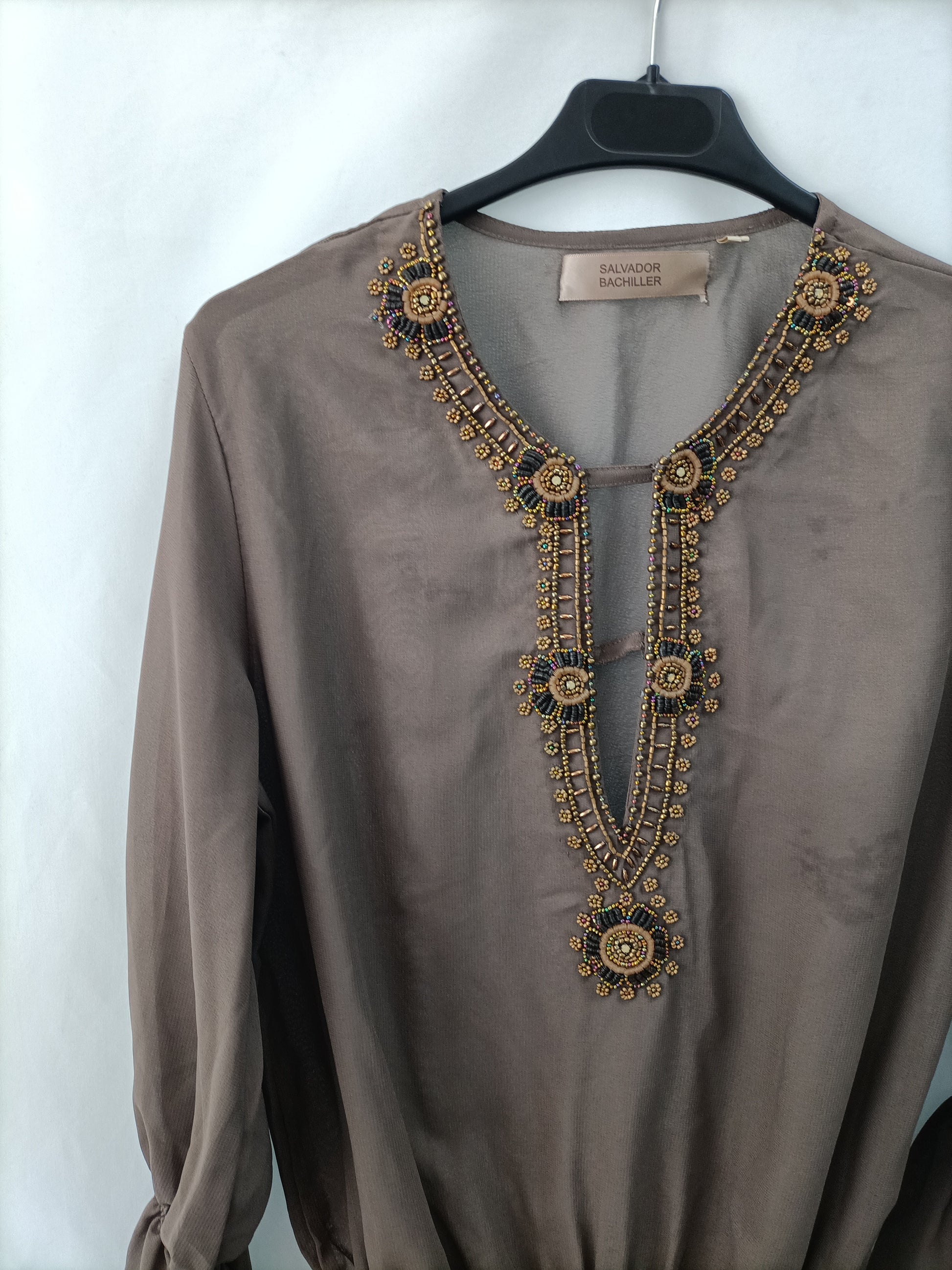 SALVADOR BACHILLER. Blusa marrón abalorios T.m