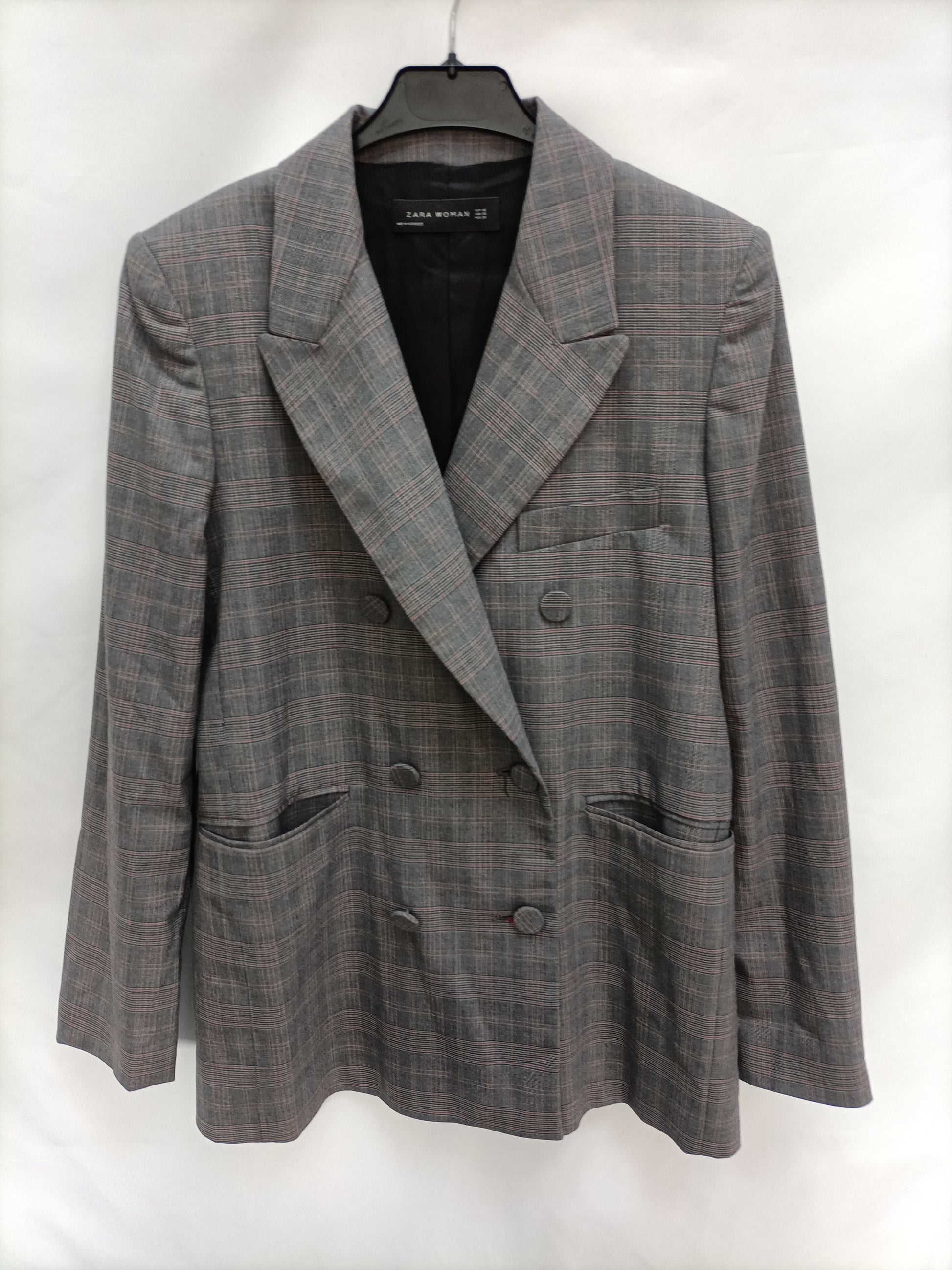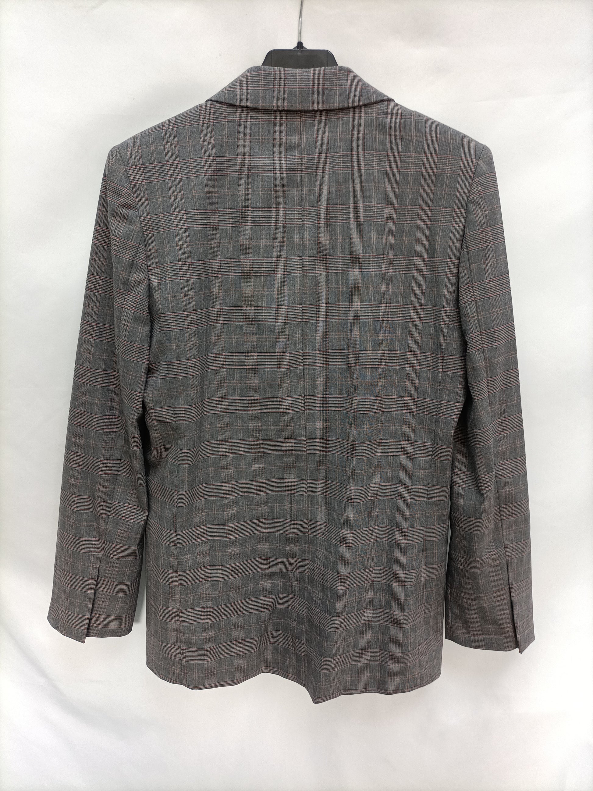 Blazer oversized de cuadros grises cruzada. De sisa a sisa 48 cm largo 75 cm