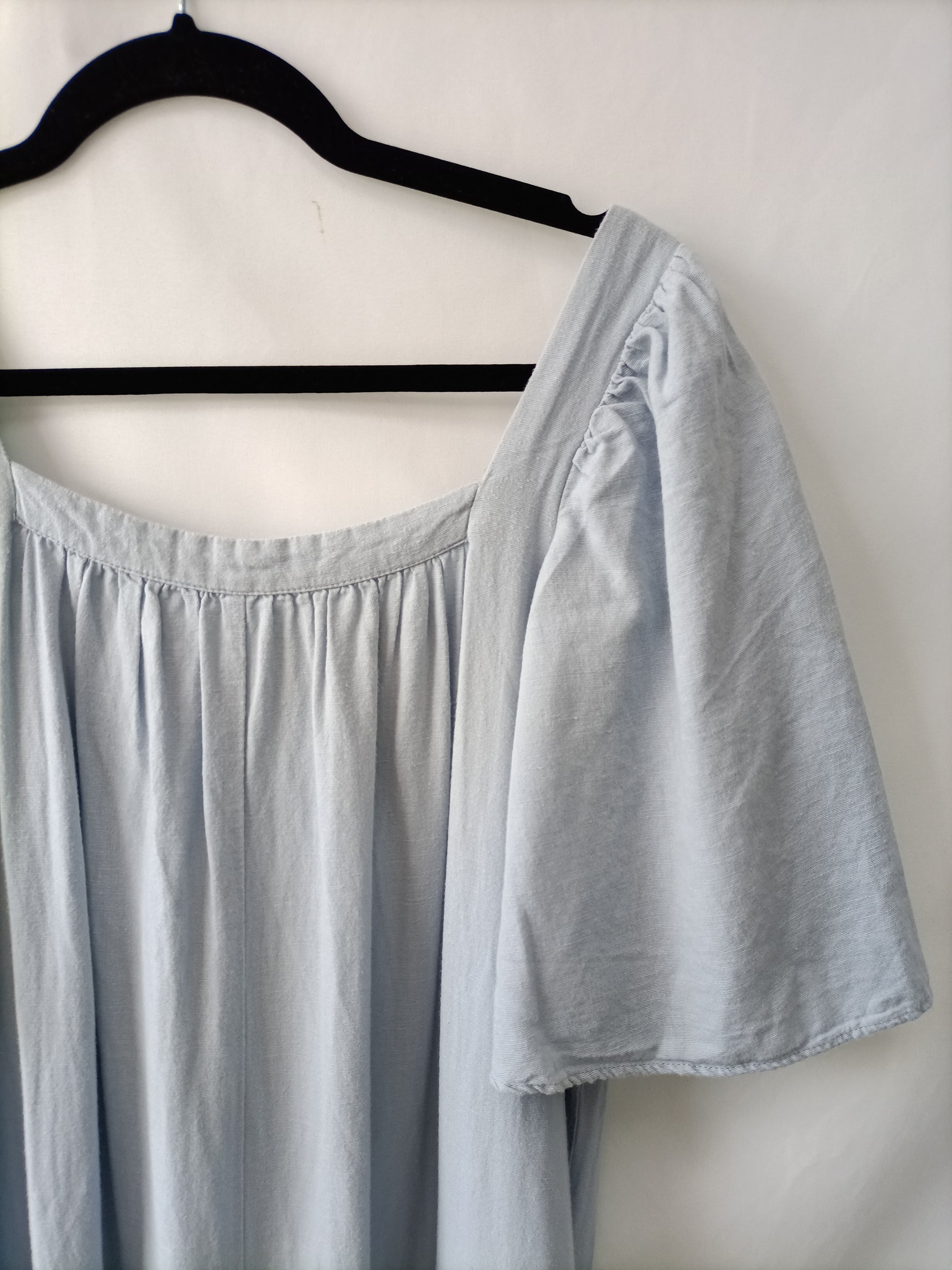 Vestido nfluido azul de tejido tipo lino. De sisa a sisa 47 cm largo 125 cm
