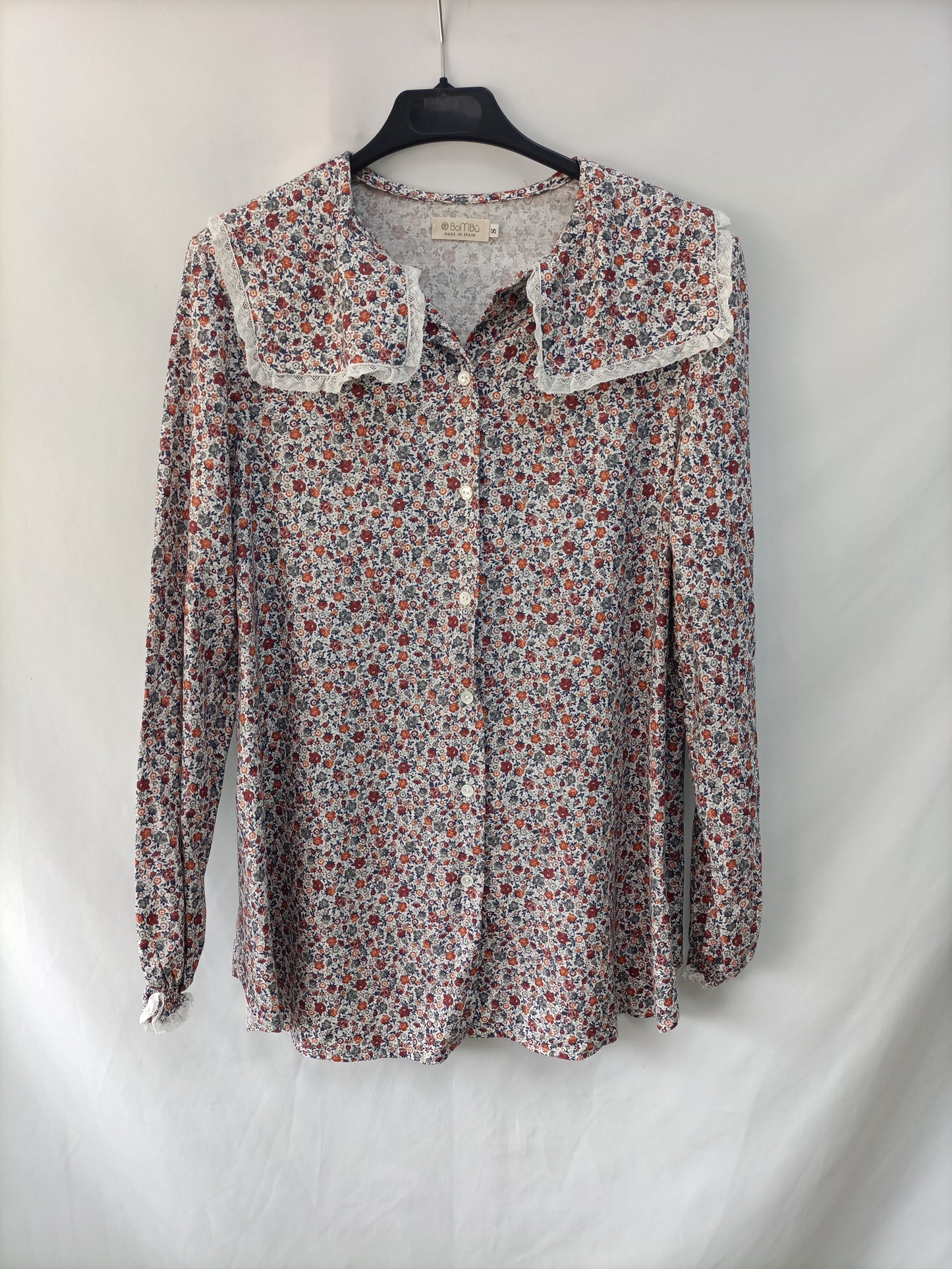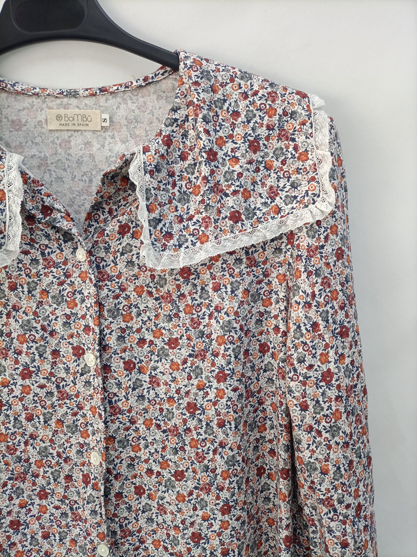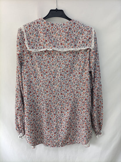 Blusa de flores fluida con cuello bebe. De sisa a sisa 47 cm Largo 72 cm