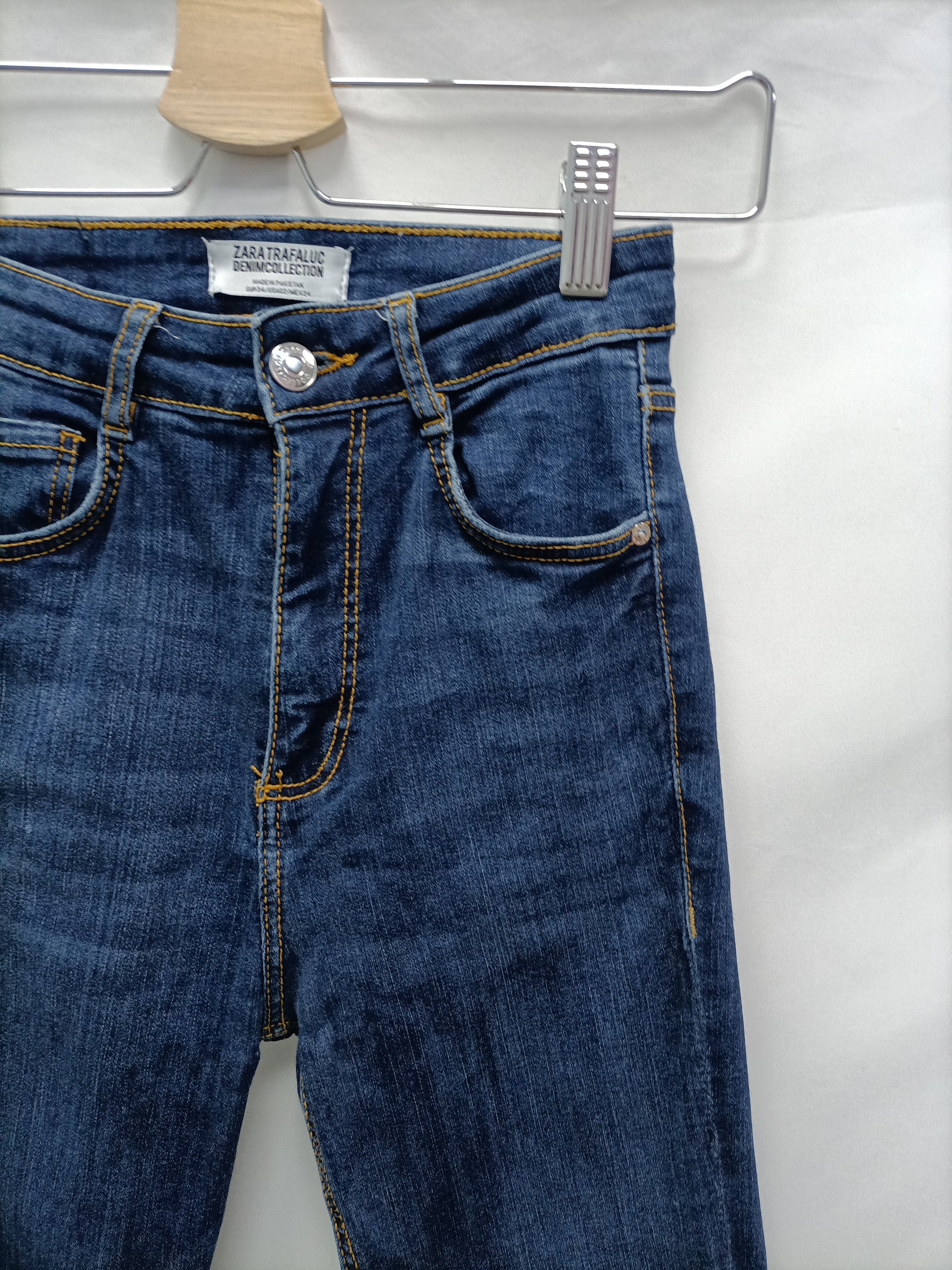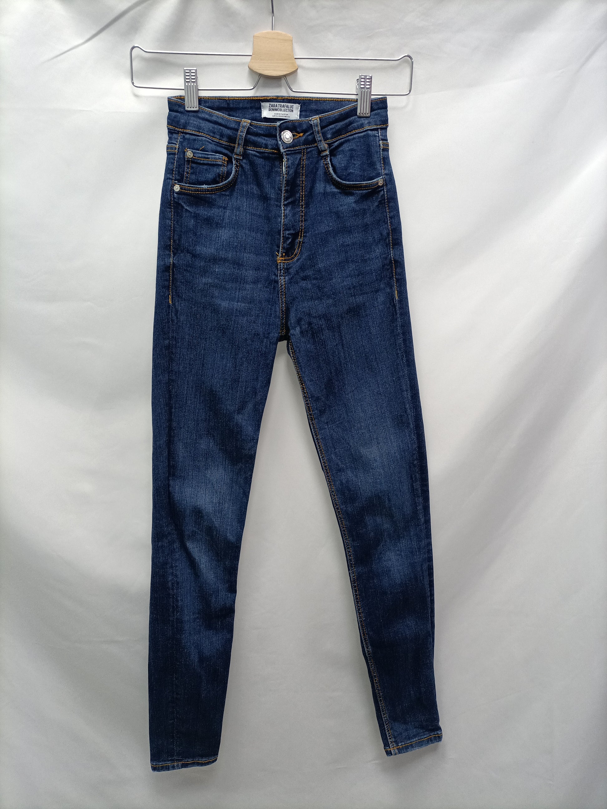 Pantalón vaquero oscuro muy pitillo alto de cintura. Elastico. Cintura 28 cm largo 98 cm