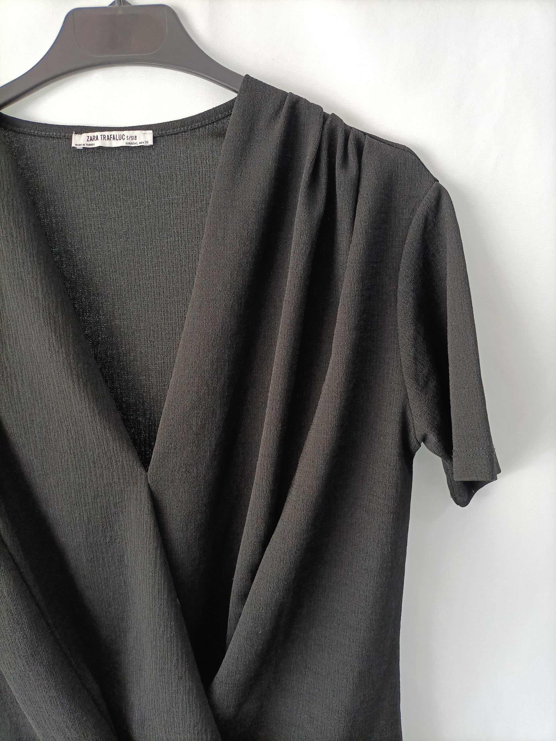 Camiseta negra cruzada. Elástica. largo 52 cm