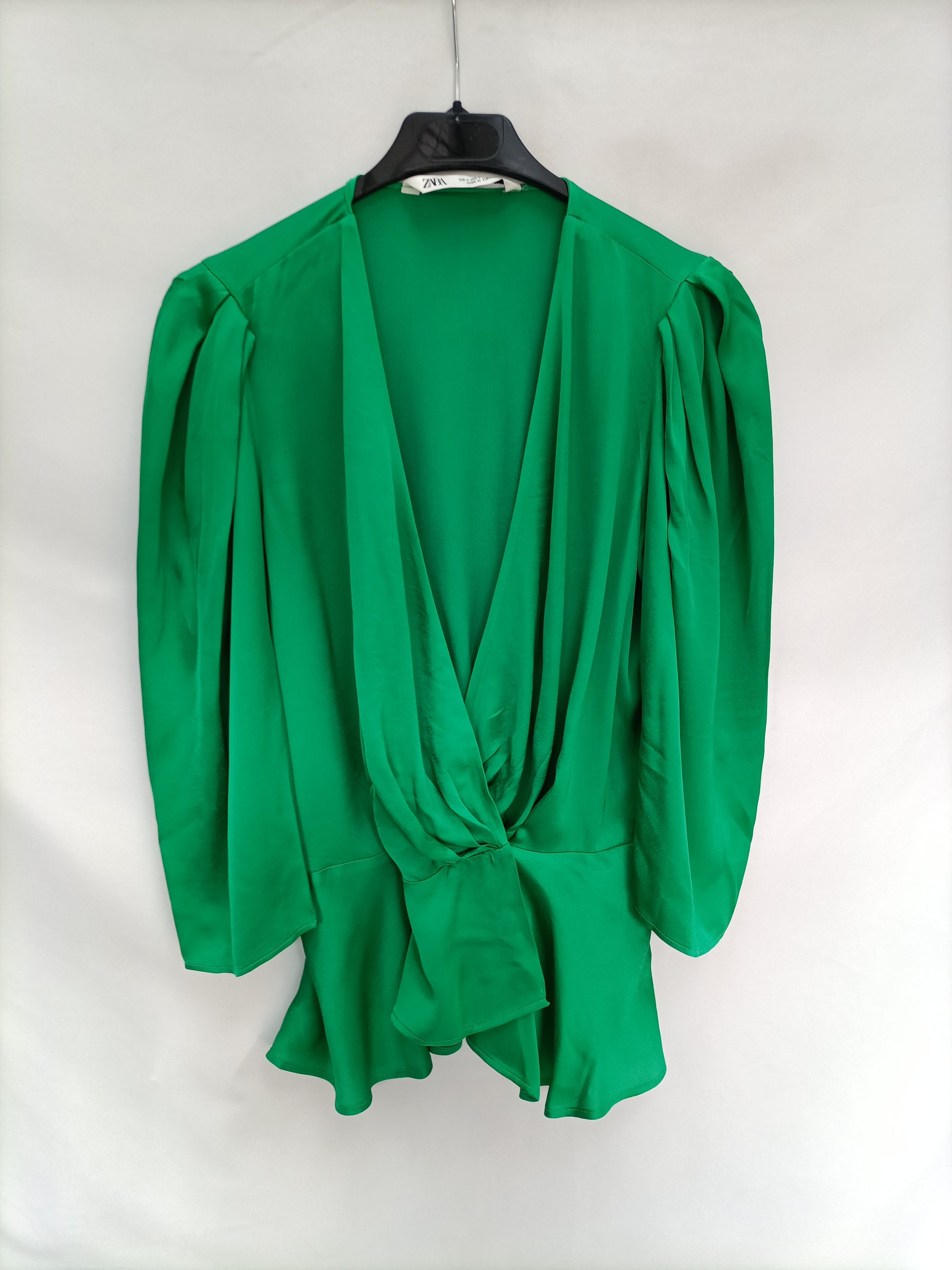 Blusa verde escote ampli cruzado.No elastico. De sisa a sisa 48 cm largo 61 cm