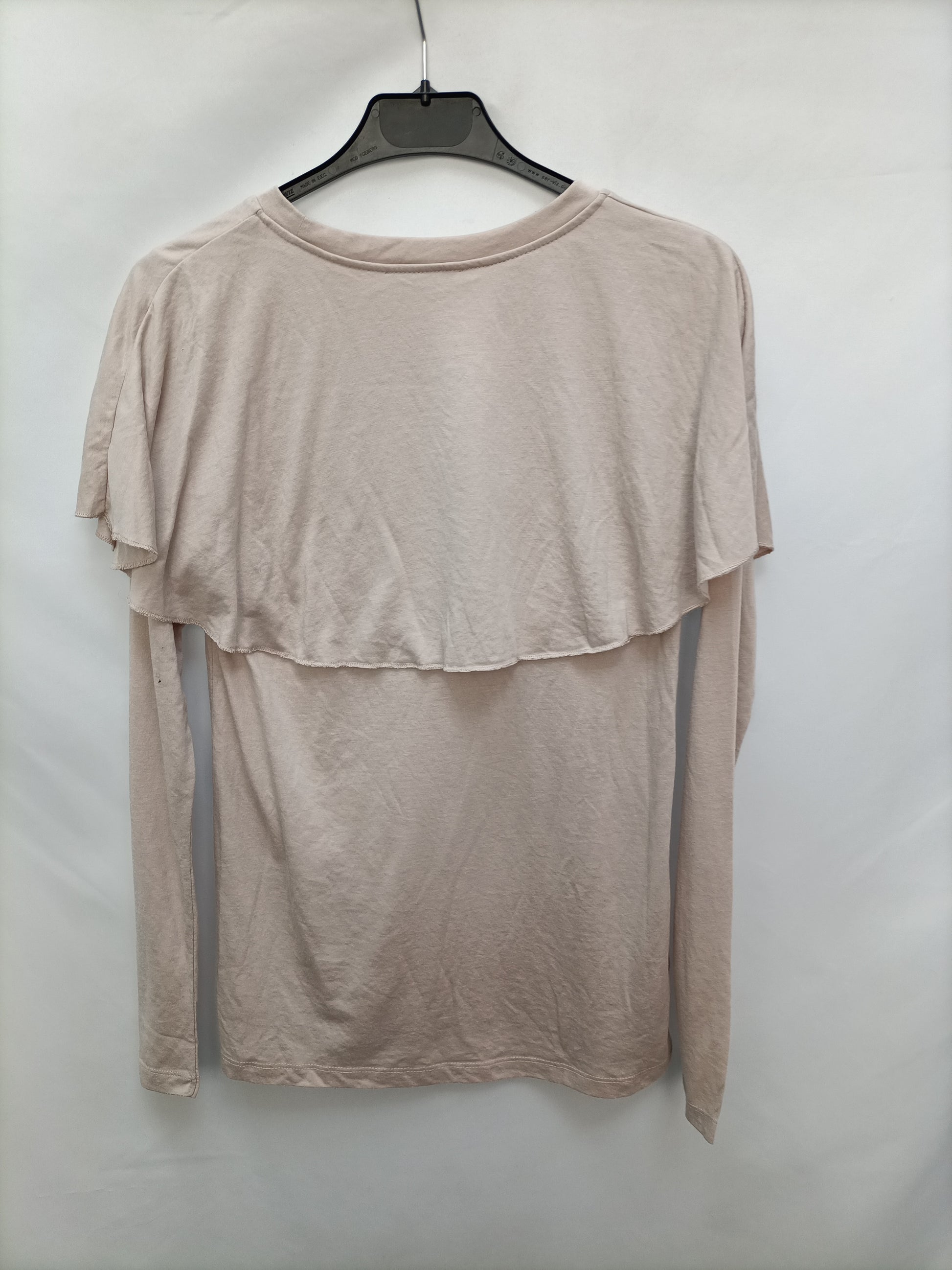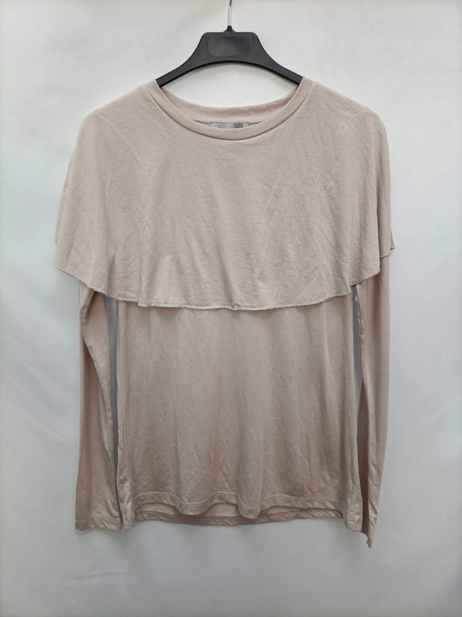 ZARA. Camisa beige volante T.s