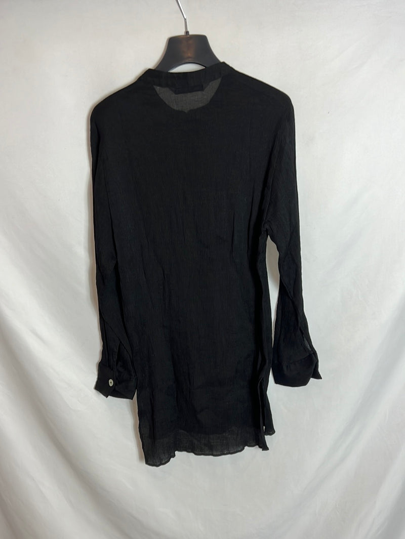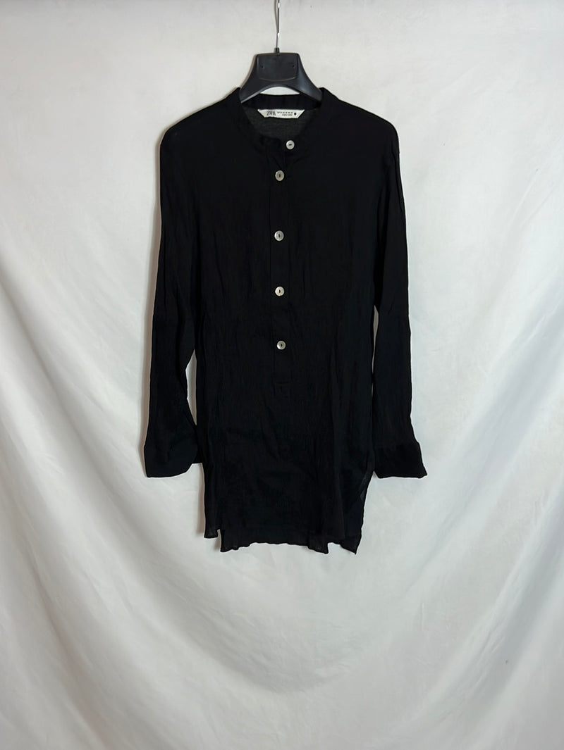 ZARA. Camisa negra tejido plisado T.XS