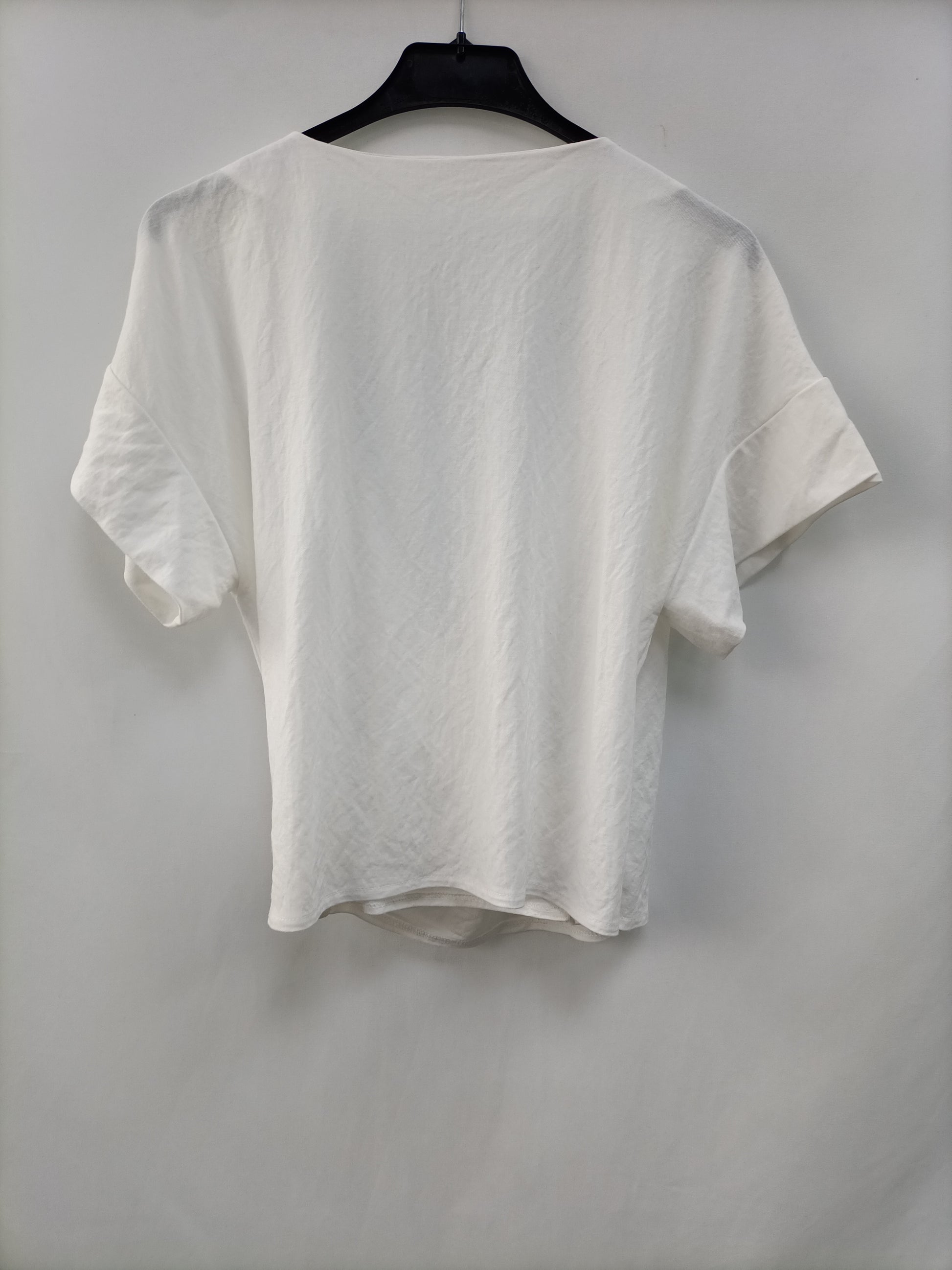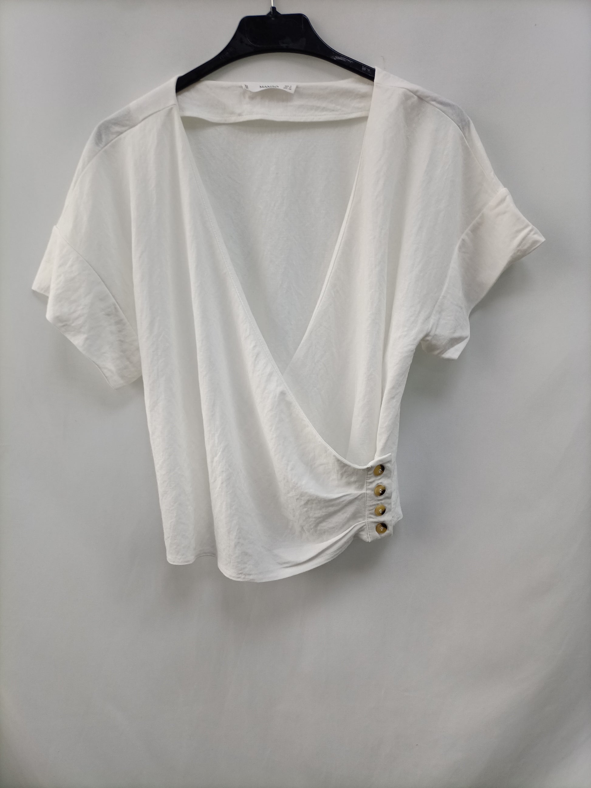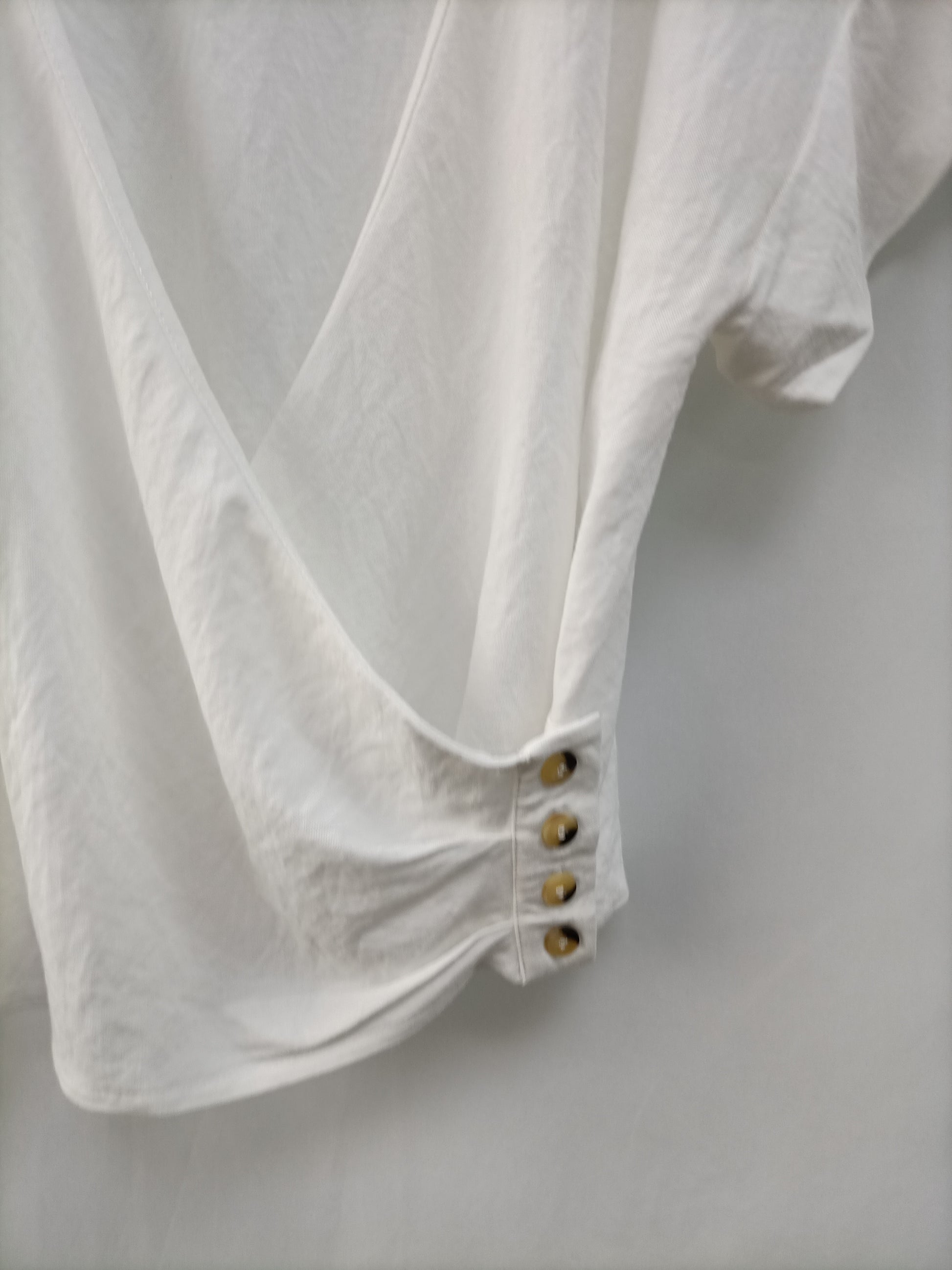 Top blanco cruzado con botones. Elastico. Largo 48 cm