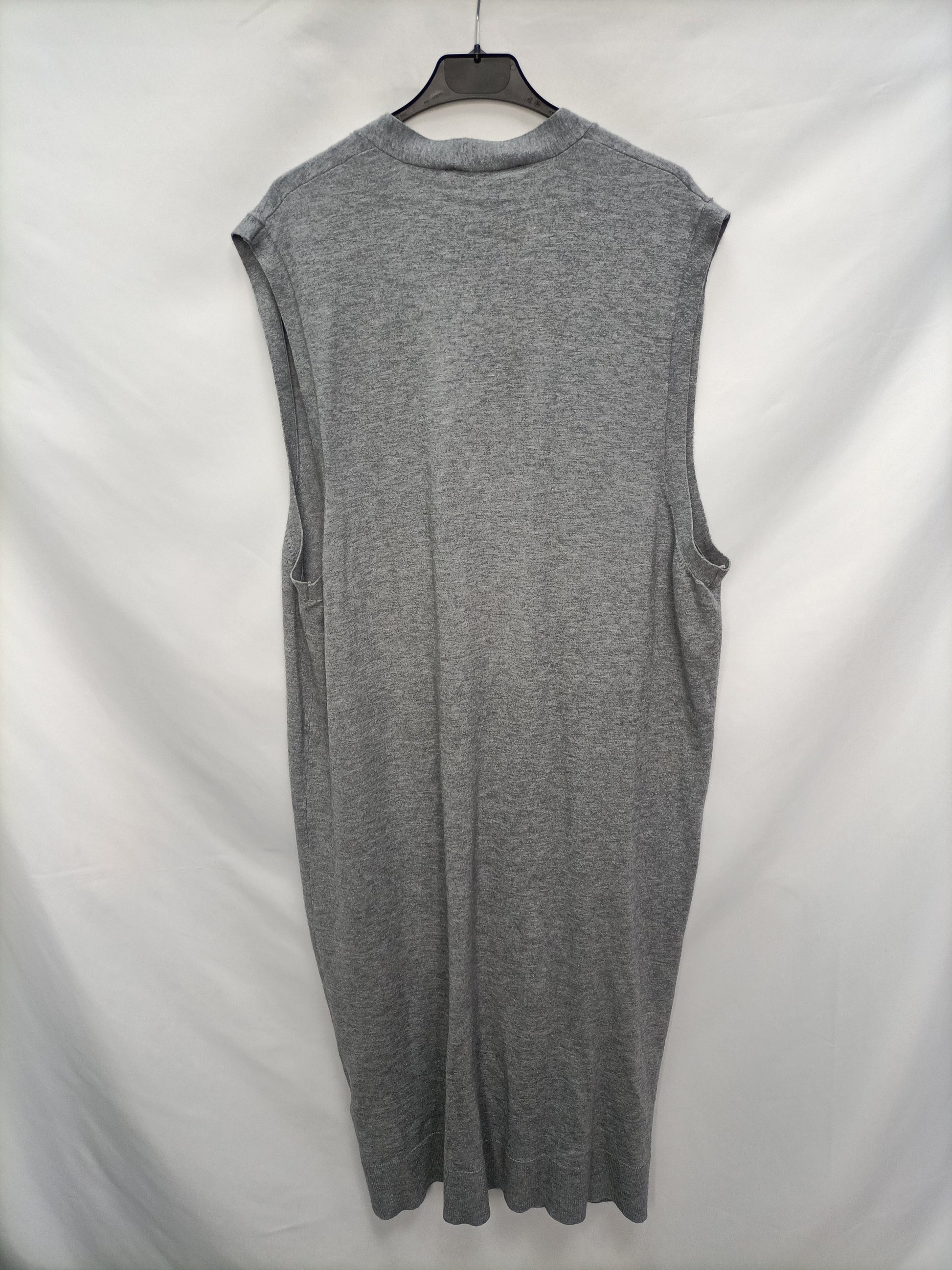 Chaleco gris largo de punto Abotonado. Fluido. Largo 123 cm