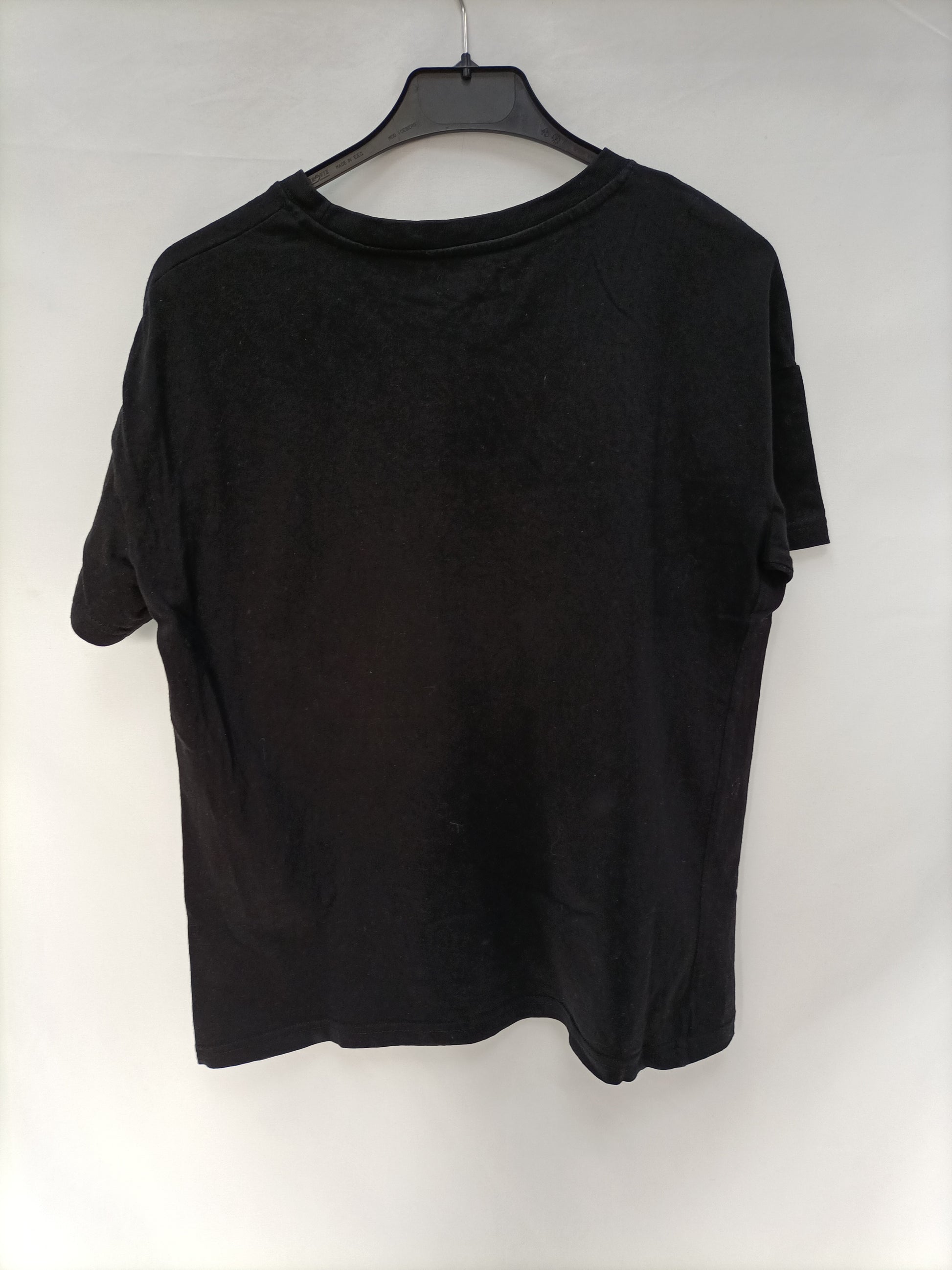 BERSHKA. Camiseta negra letras T.xs
