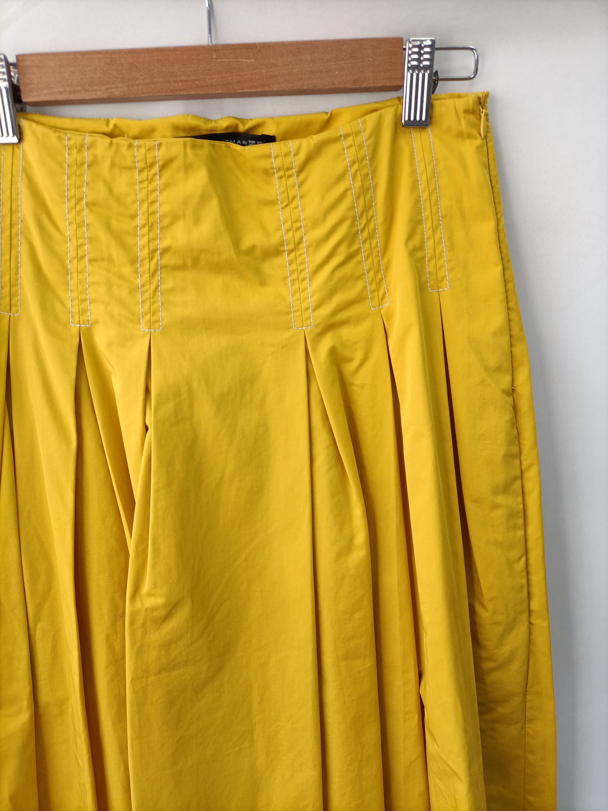 Falda midi de tablas color amarillo. No elástica . Cintura 35 cm Largo 83 cm