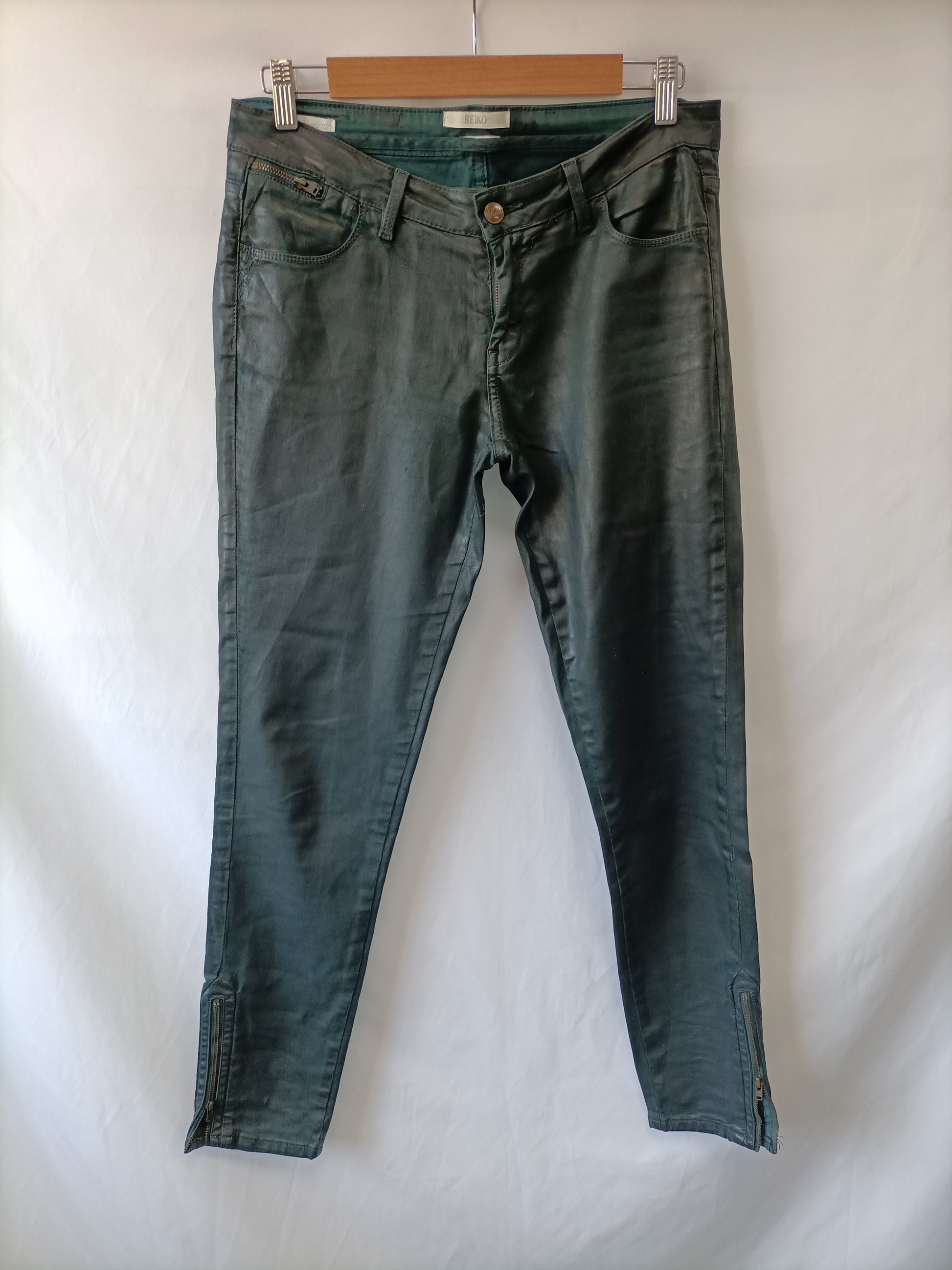 REIKO. Pantalón verde encerado T26(40)