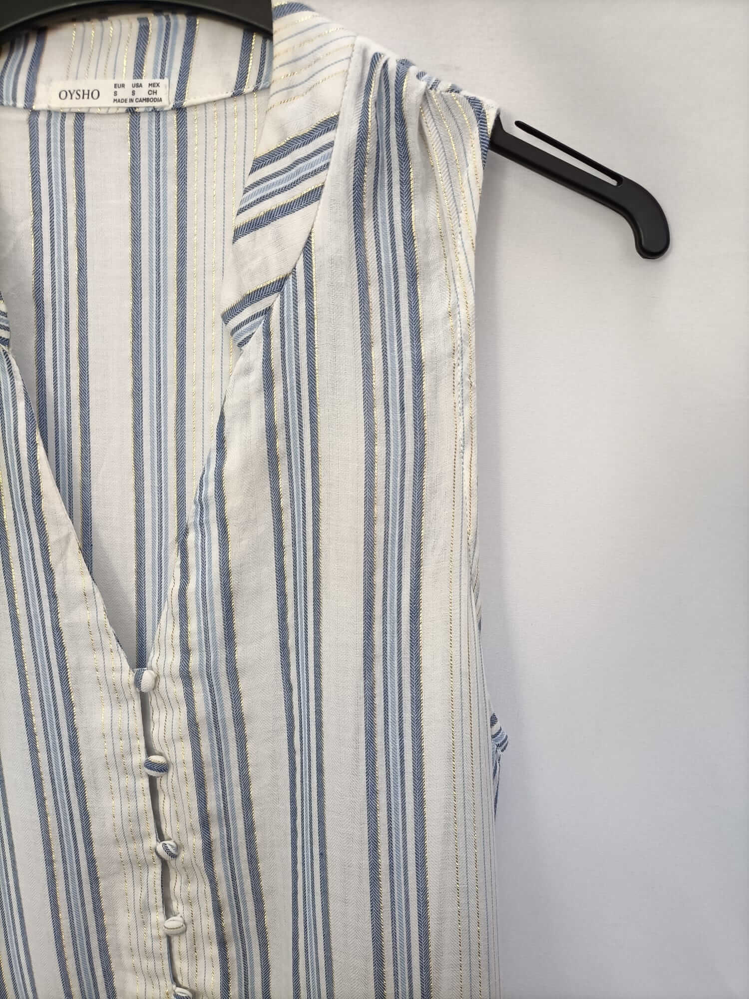 Oysho. S. Vestido largo de rayas con detalle de hilos dorados. Fluido y finito. No elástico. De sisa a sisa 47 cm largo 134 cm