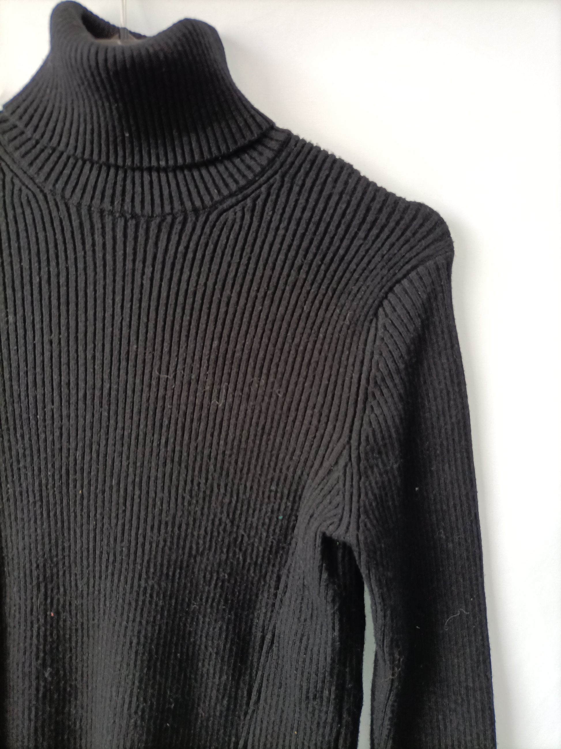 Jersey de punto negro de canalé. Elastico. Largo 55 cm.