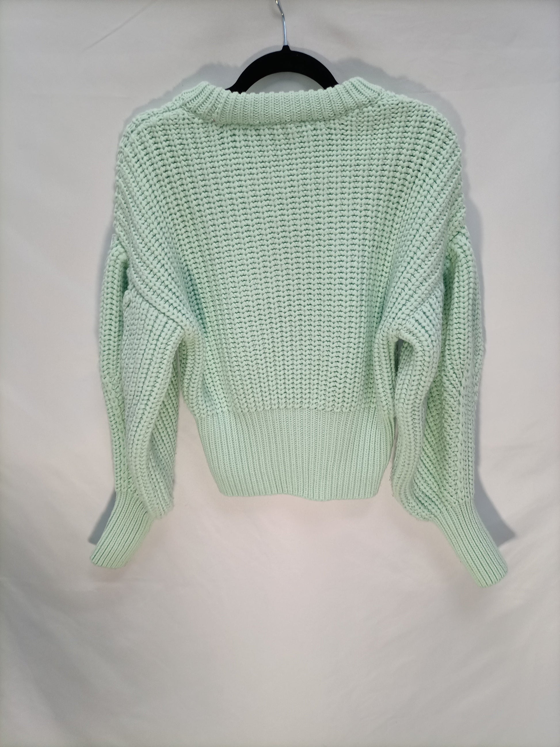 Jersey verde pastel gordito y corto con las mangas Abullonadas. Elástico. largo 56 cm