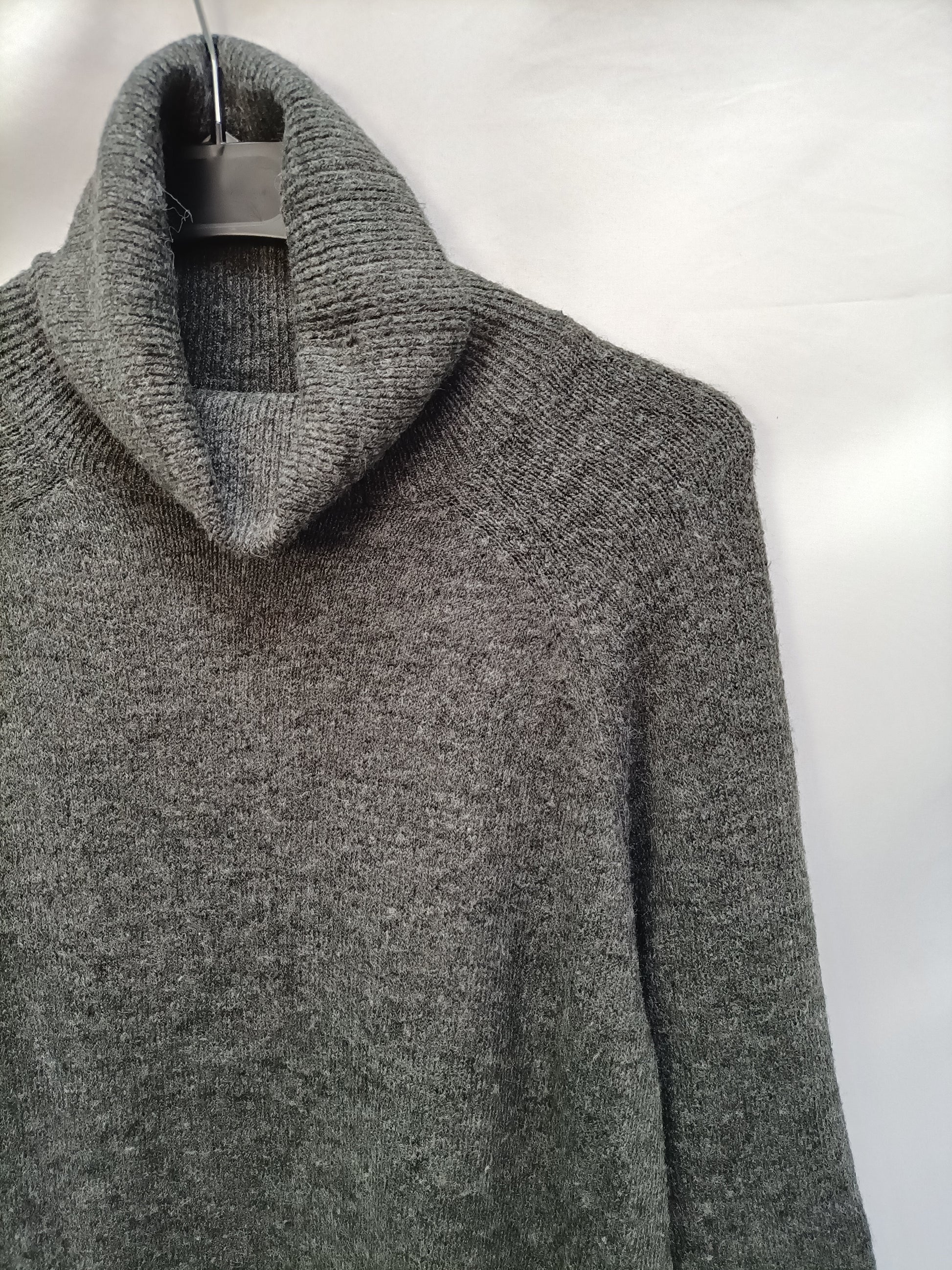 Jersey largo/vestido corto gris oscuro de cuello alto. Suave y elastico. Largo 81 cm