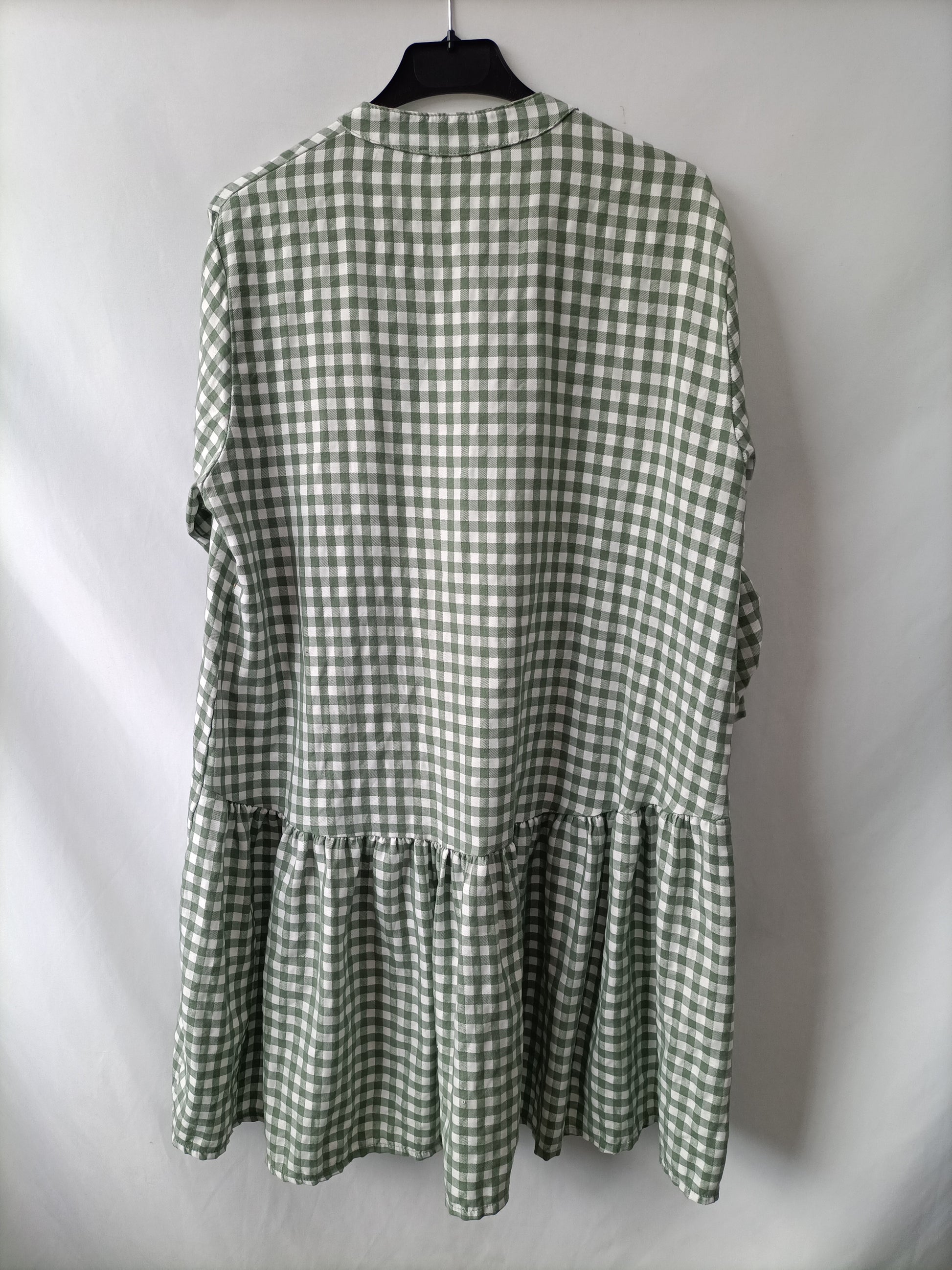 Vestido corto cuadros veerdes y beiges.No Elastico. De sisa a sisa 53 Largo 92 cm.