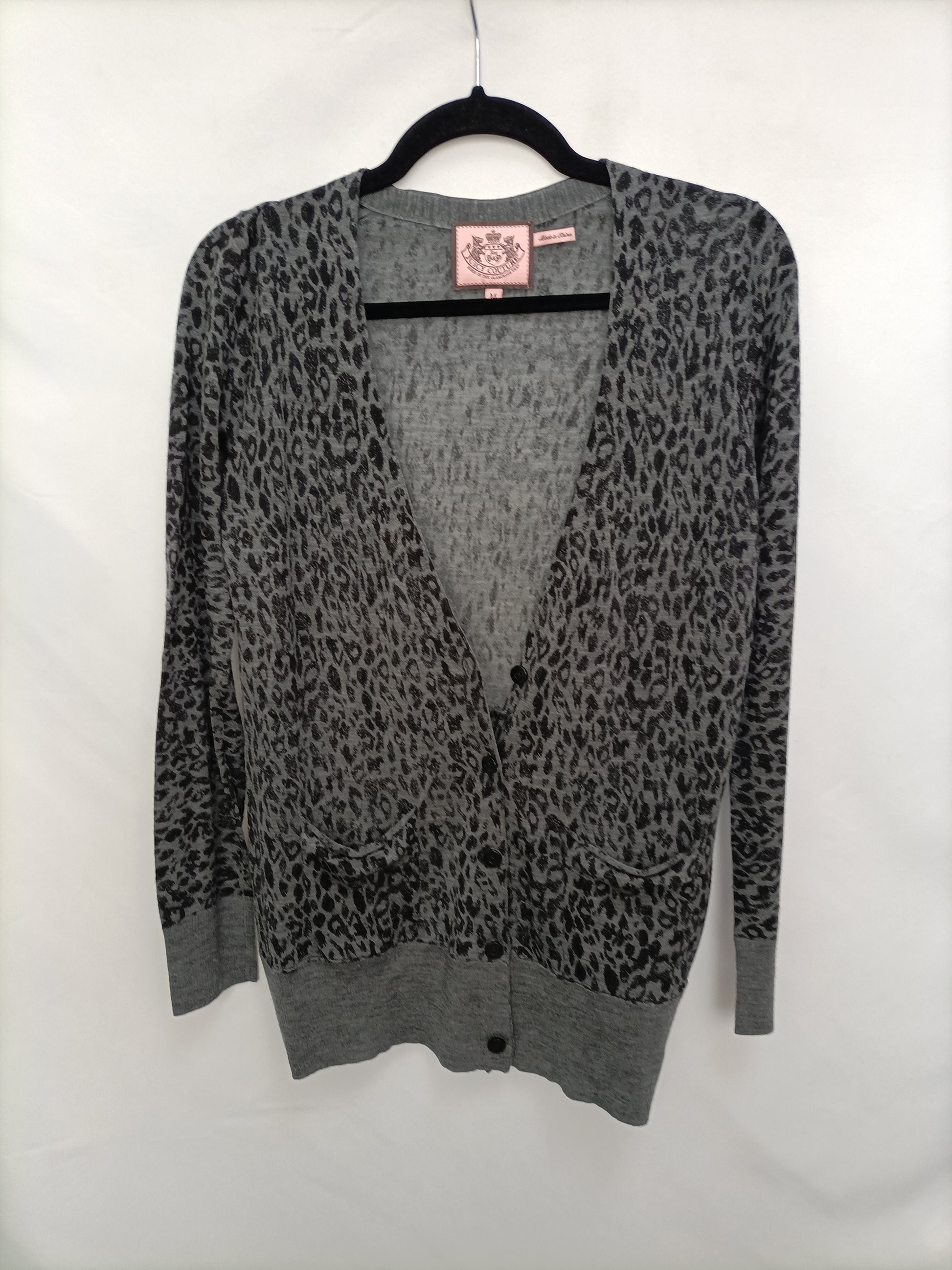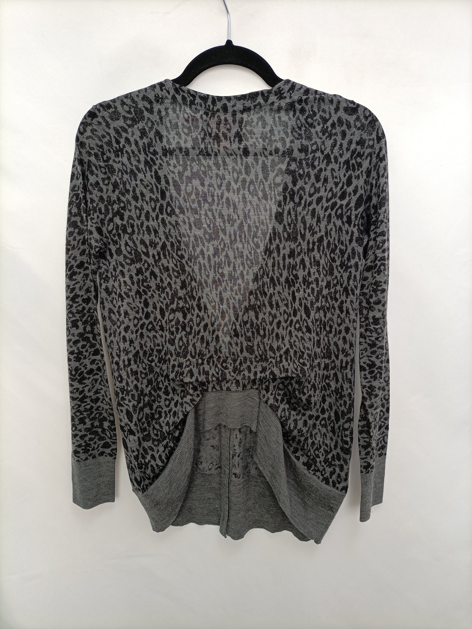 Rebeca gris animal print finita detalle de fruncido en la espalda.largo 70 cm