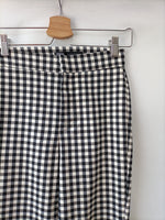 pantalón de cuadros vichy negro y beige. ligeramente acampanados. no elástico. Cintura 32 cm Largo 92 cm.