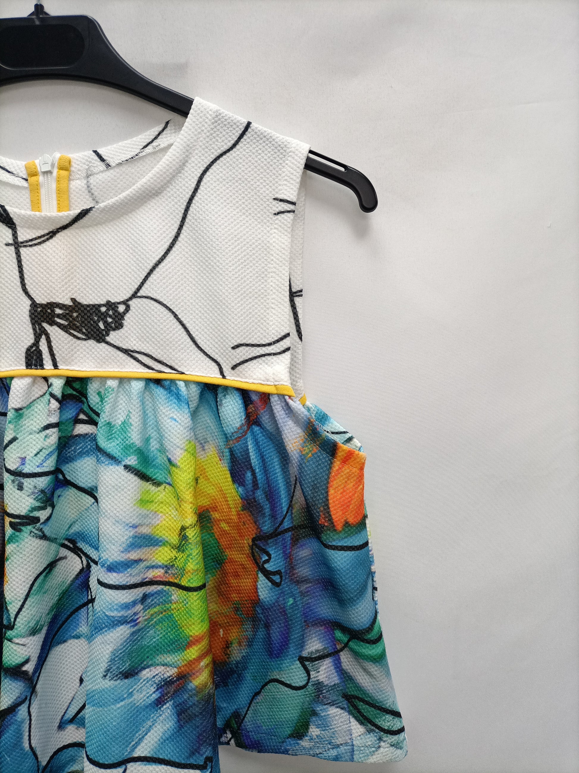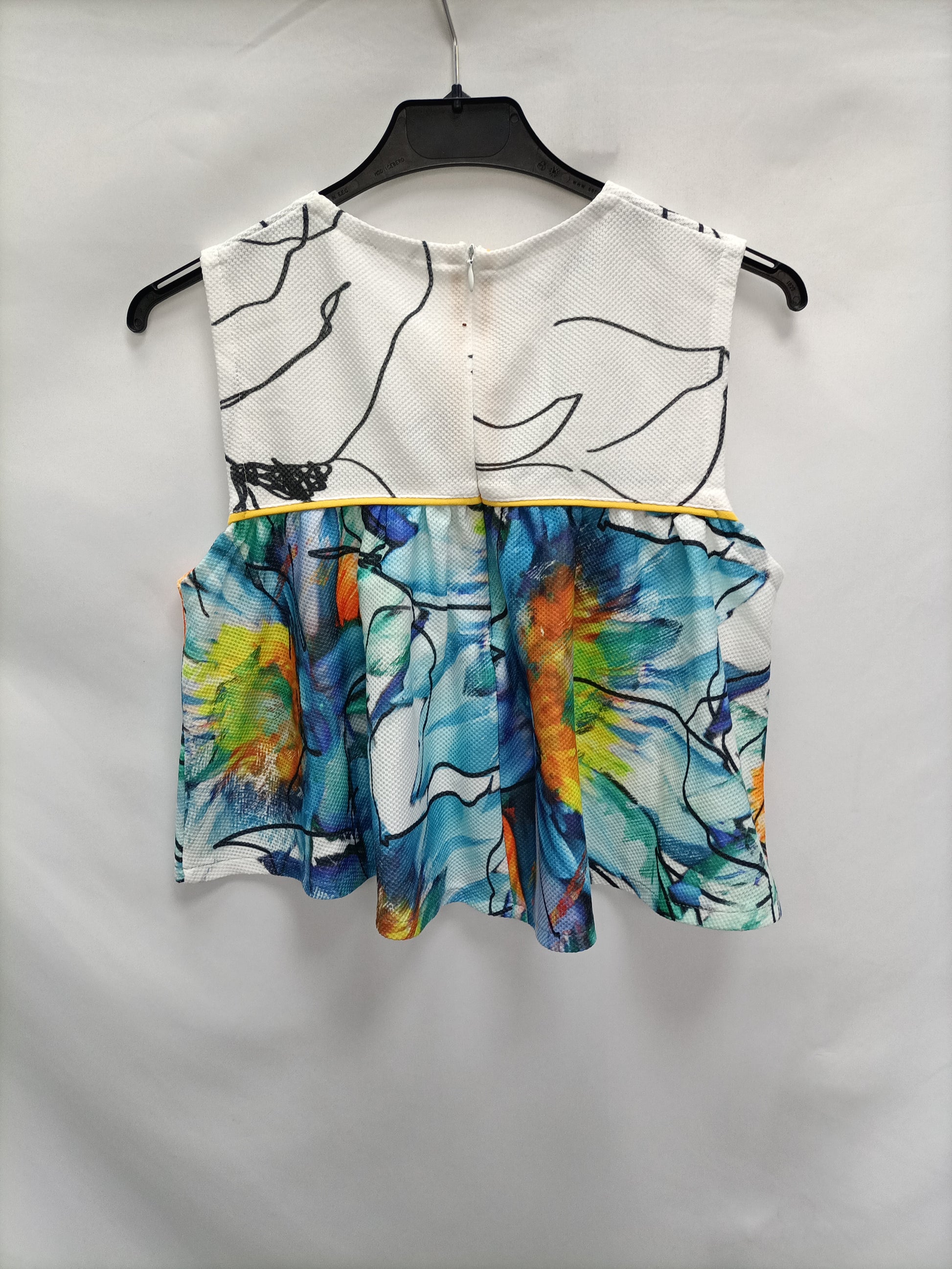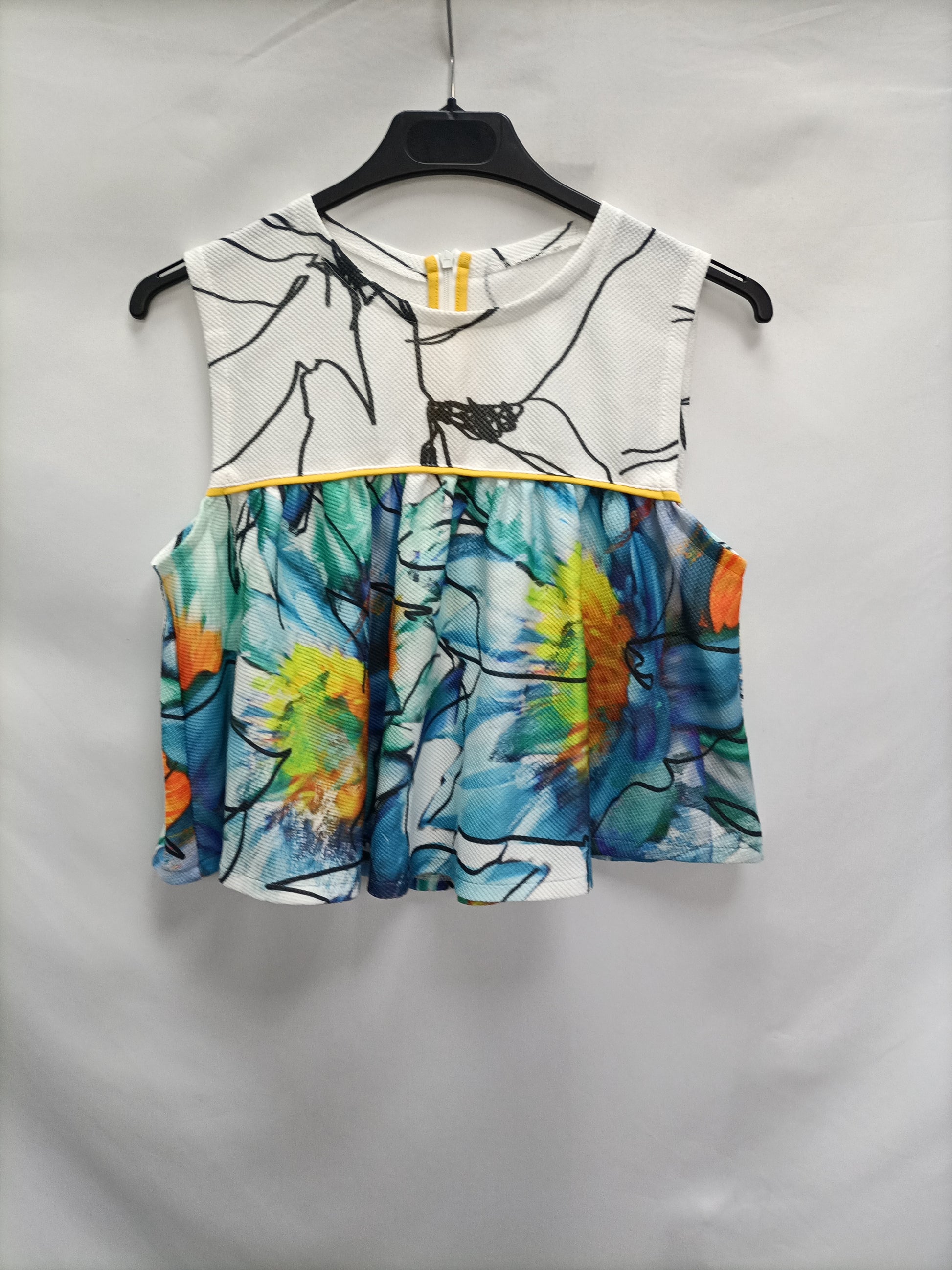Top corto estampado de tejido elástico tipo Piqué. largo 43 cm