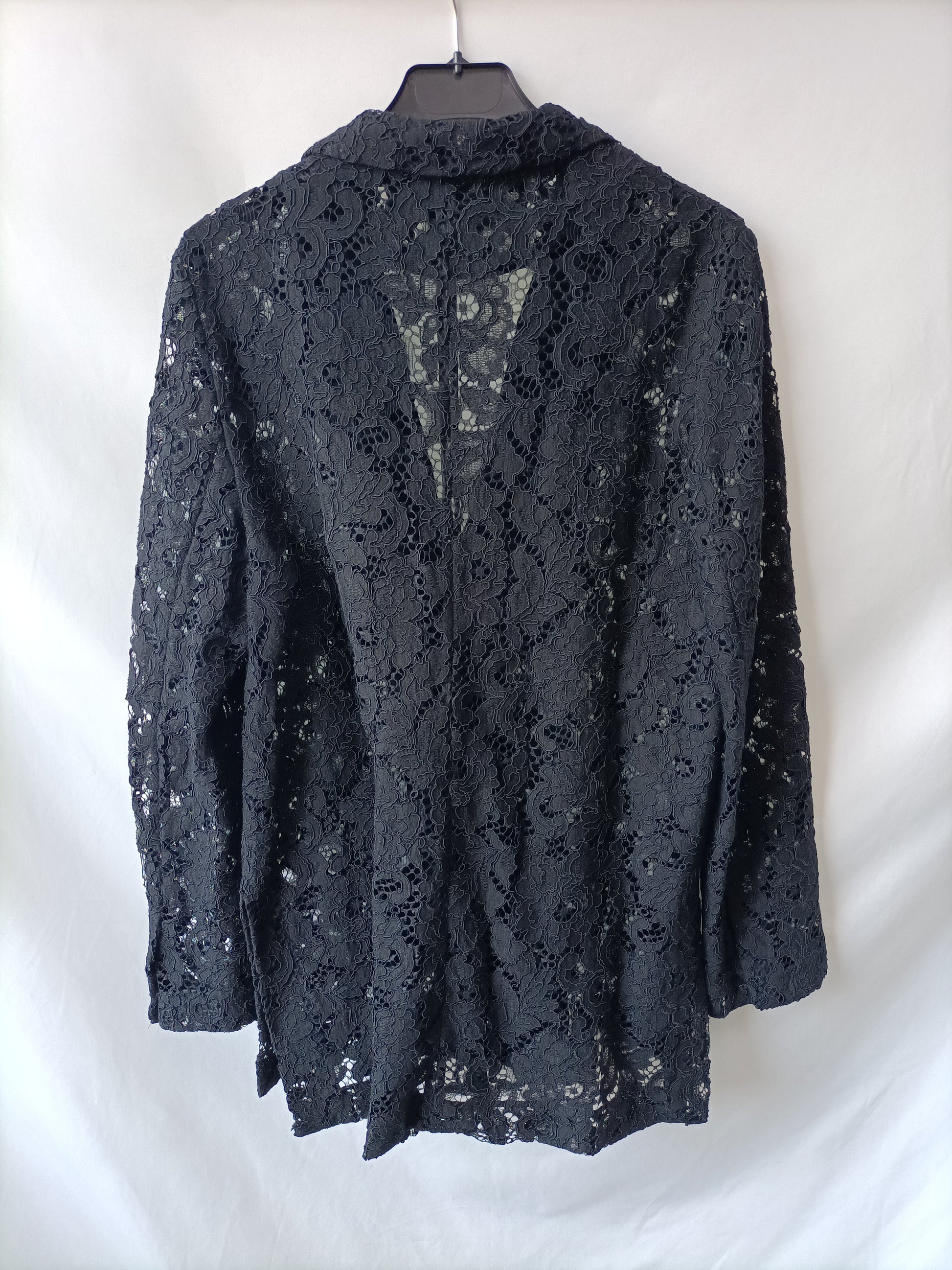 Blazer de encaje negra cruzado. De sisa a sisa 48 cm Largo 75 cm.